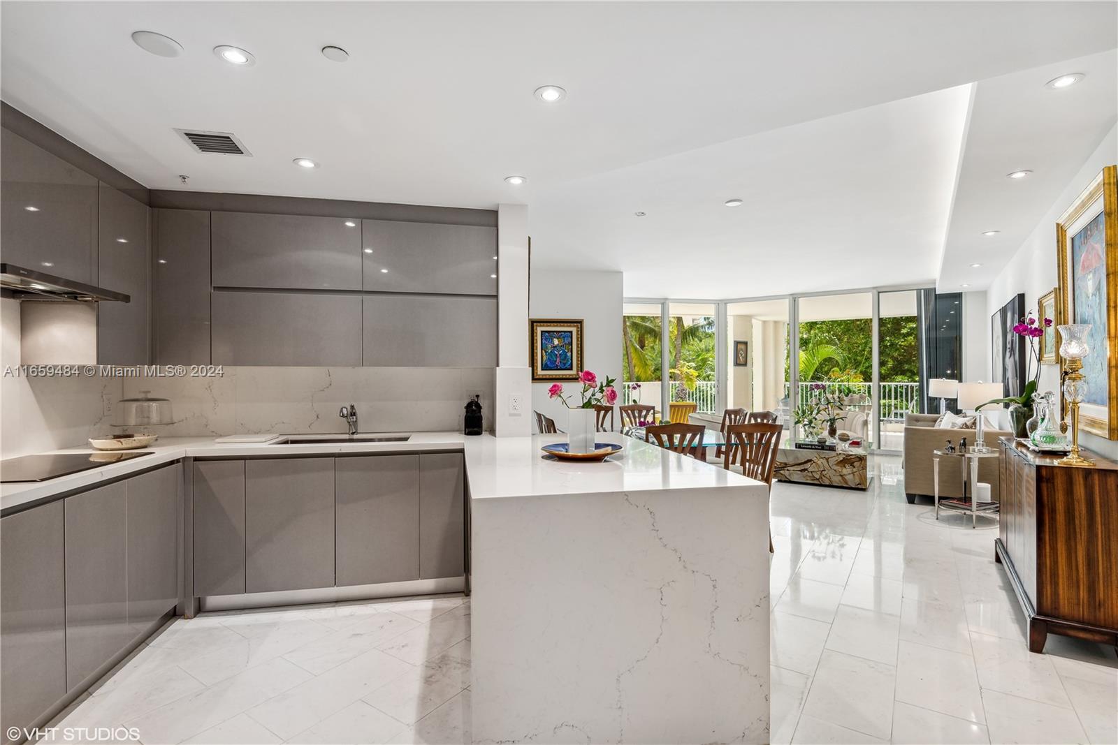 2 Bedroom 2 Bath fully renovated apartment at The Ocean Club in Key Biscayne. Walk in and be greeted by a sophisticated and modern open Kitchen consisting of top-of-the-line stainless steel appliances, quartz countertops and new LED lighting. This modern style residence has new marble floors, soffits with linear AC diffusers and indirect lighting, custom closets. M-Bathroom has an open walk-in shower for easy accessibility, beautiful double sink vanity and lit mirrors. This unit has breathtaking lake views with an oversized lanai. Great open spaces make this apartment bright, efficient and spacious. The Ocean Club sets the standard for resort living, multiple pools, dining options, gym, kids' playground, half basketball court and tennis club featuring 8 clay courts and 3 padel courts.