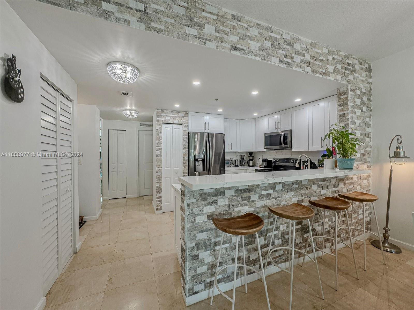 Experience breathtaking bay and marina views from this luxury waterfront residence in sought-after North Bay Village. The full-service 360 condo and marina development includes 3 bedrooms, 2 baths, and a 2-car garage (one covered) along with a storage room. Features include impact-resistant glass, elegant carrara marble floors, 24-hour security, and a concierge desk with unlimited valet service. Residents can enjoy a fantastic pool area, a fitness center, a market, a recreation room, and more. Unwind on the spacious balcony with stunning intercoastal views. Remodeled kitchen with all stainless steel appliances.