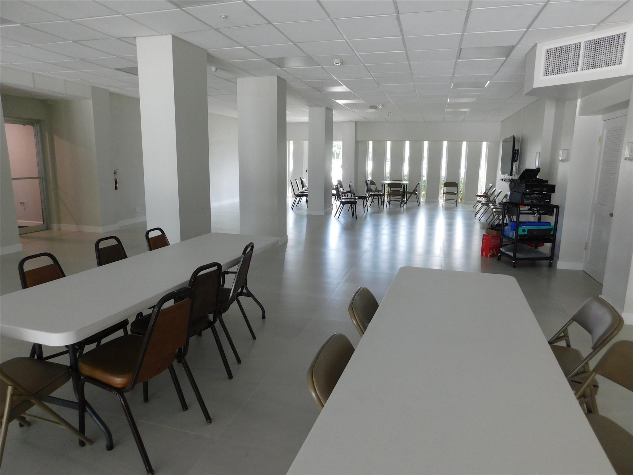 Marble floors throughout. A 10-minute walk to the public beach at Earl Lifshey Ocean Park. The combo of easy walking to a beach (that also has paid parking and two free handicap parking spots) and of a peaceful pool on the intracoastal, contributes a lot to a great lifestyle. Downstairs, the 60 ft by 30 ft pool on the intracoastal is heated at 88F=31C for about 6 months; during Summer it's probably colder than 88F, but it's still slightly heated - water doesn't feel cold in any season. Nice gym and library rooms. The meeting/activities/card room was just remodeled. Shuffleboard game.