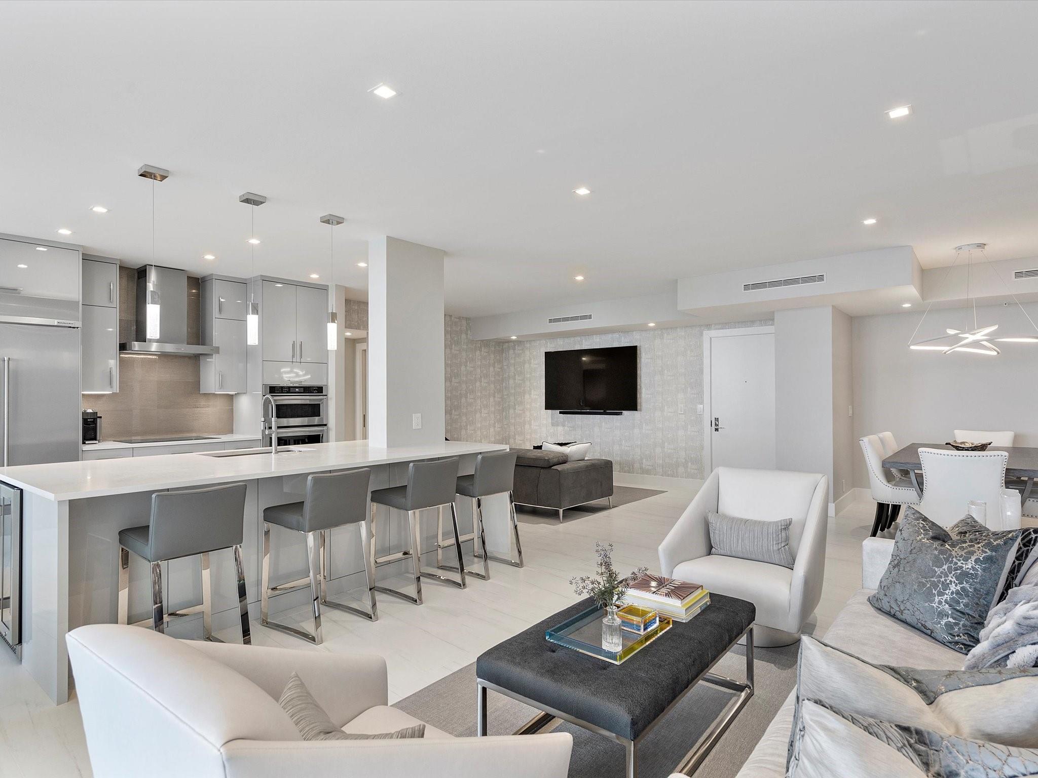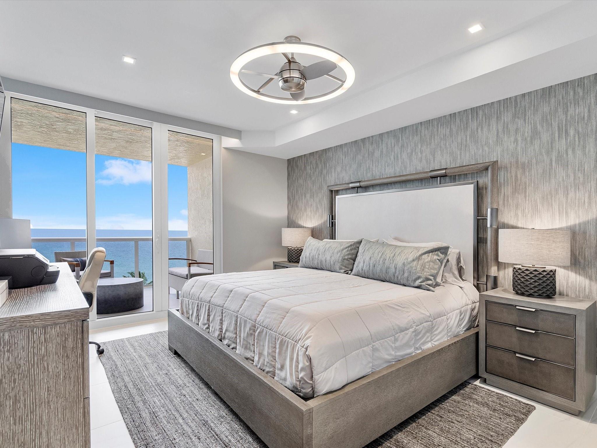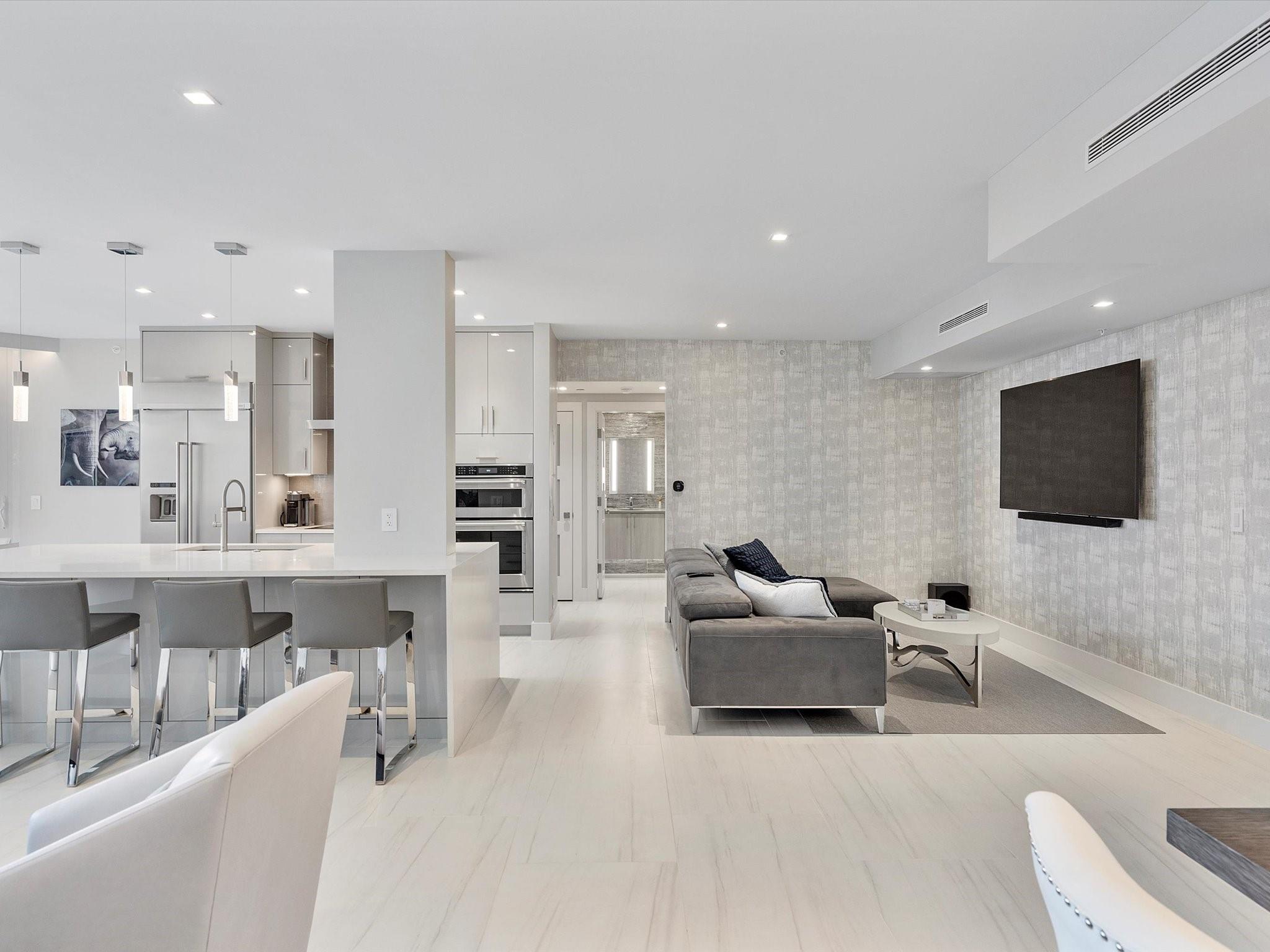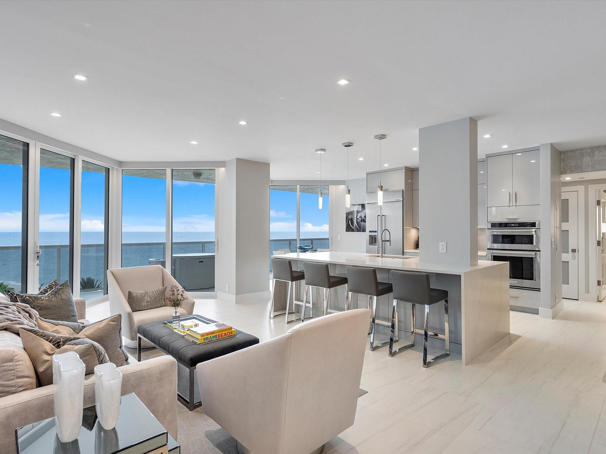 This fully renovated condo boasts top-of-the-line features and gorgeous direct ocean views. Spacious open kitchen with eating area, wine fridge, induction range, convection oven, and ample counter space. The master bath been redesigned with large shower and a separate enclosed toilet. 2nd bedroom has ocean views, and renovated 2nd bathroom includes a tub. New den with oversized TV and large seating area. Formal dining room, raised ceilings, high-impact glass, and remote-controlled window treatments. New laundry room with sink. L'Hermitage, a premier luxury resort-like condominium complex that spans over 10 acres of oceanfront property and includes amenities such as tennis courts, fitness center, secured complex, sanas/steam rooms, a beach with service, a pool deck restaurant. Pets are OK.