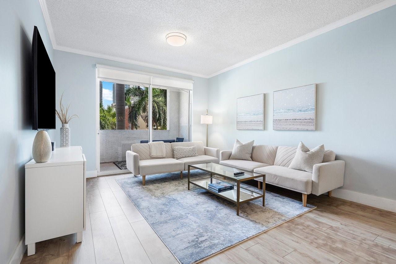 Discover this fully renovated 2-bed, 2-bath unit in Porto Bellagio of Sunny Isles Beach. With eastern exposure from the balcony, the unit faces the ocean, offering coastal skyline views. Featuring 1,116 sqft. of contemporary living space— this is the largest 2/2 model in the building, boasting new vinyl flooring and a sleek waterfall quartz kitchen counter. In-unit washer & dryer provide added convenience. The Mediterranean-inspired building sits on the Bay and offers luxurious amenities, including but not limited to: pool, jacuzzi, gym, and business center. Enjoy upscale living in this prime location!