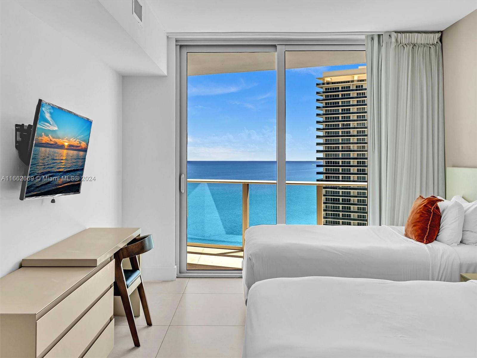 Beautifully appointed spacious 2-bedroom, offered turnkey-furnished and move-in ready! Featuring tile flooring, chef's kitchen with top-of-the-line appliances and cooking island, lavish bathrooms and endless ocean and glittering skyline views. Hyde features first class resort amenities that include a luxurious pool, manicured beachfront pavilion, state of the art spa and fitness facilities, on-sight dining options and much more!