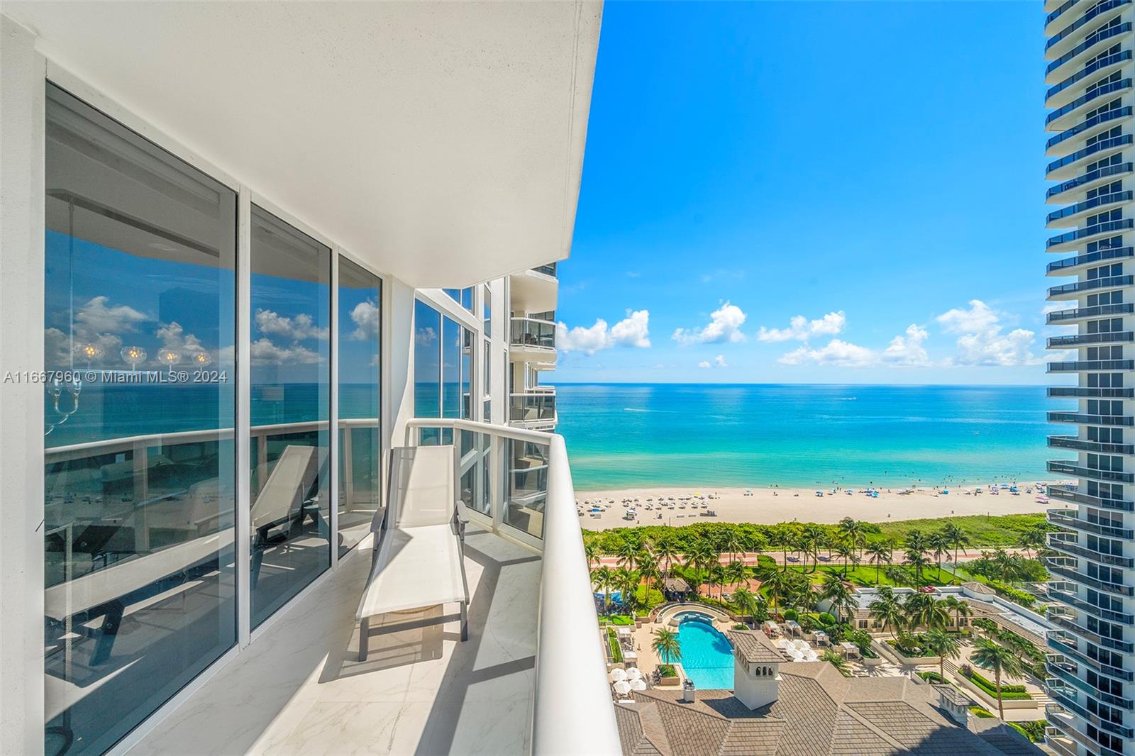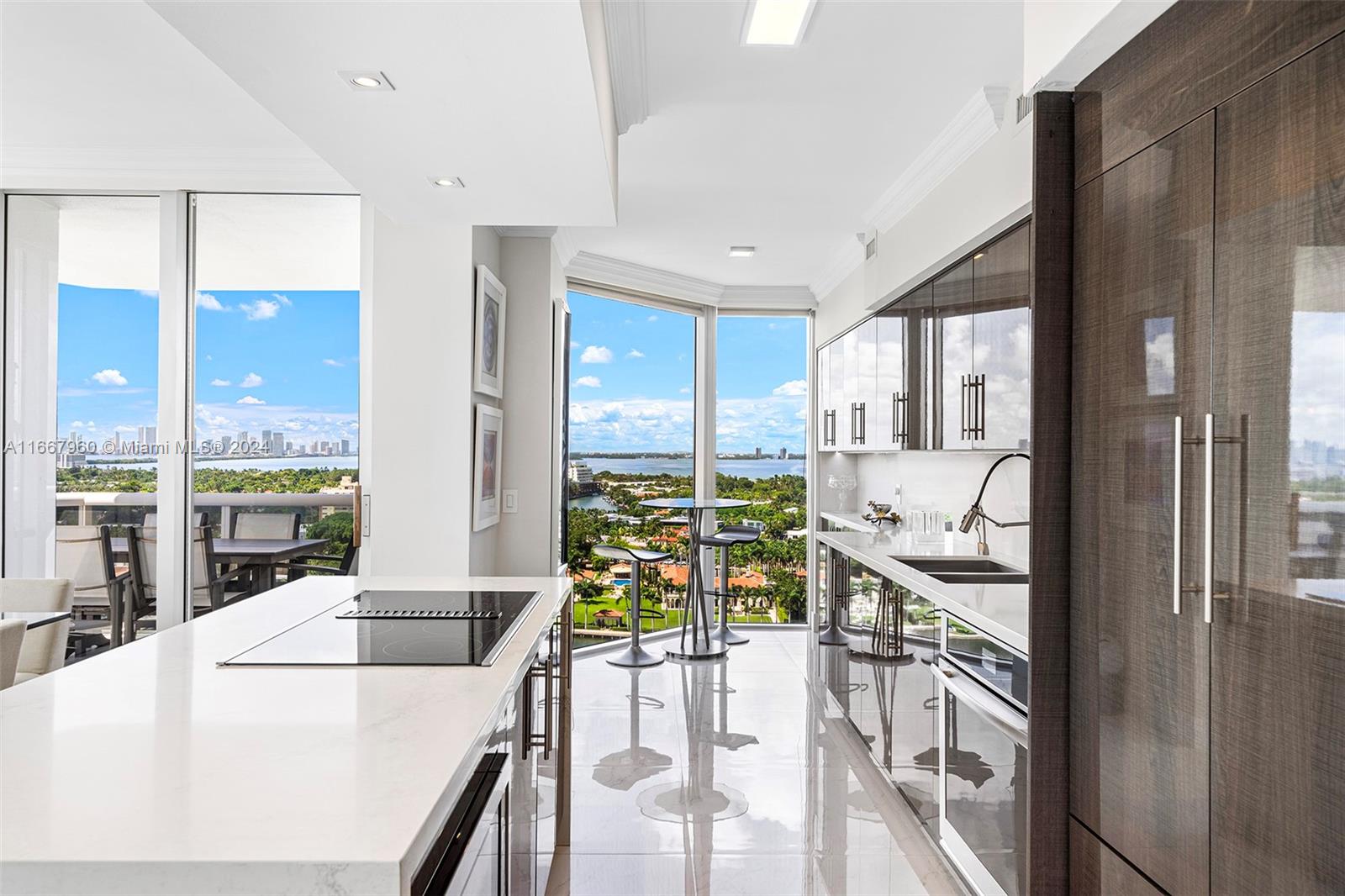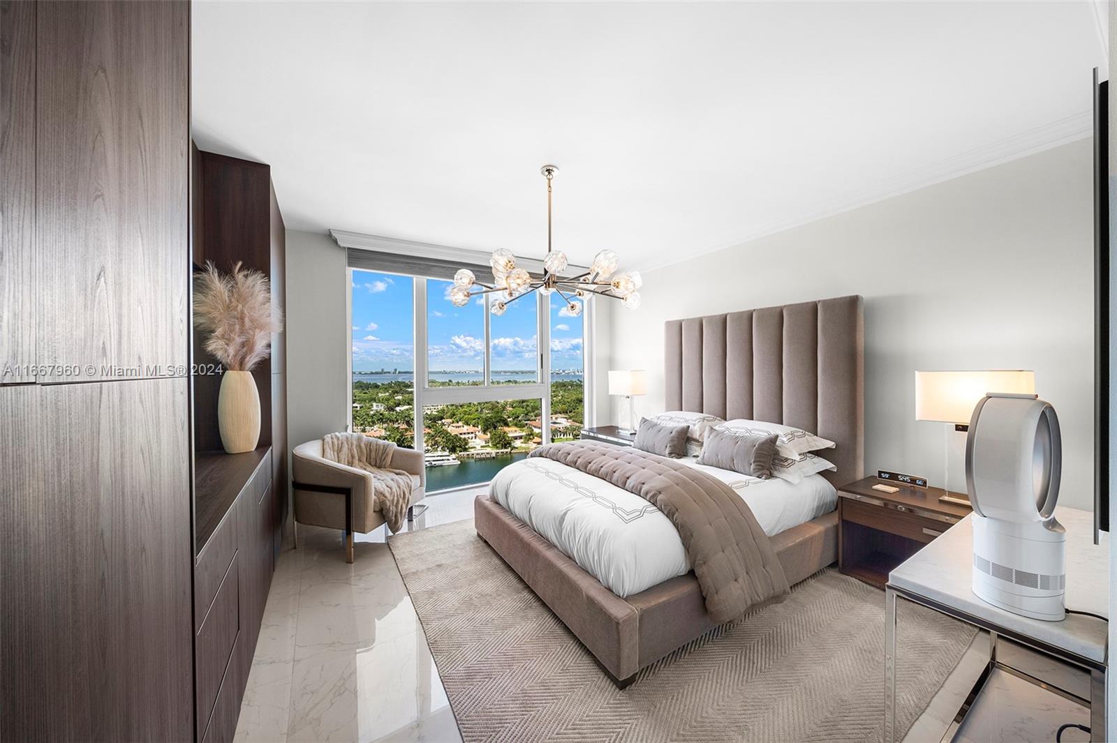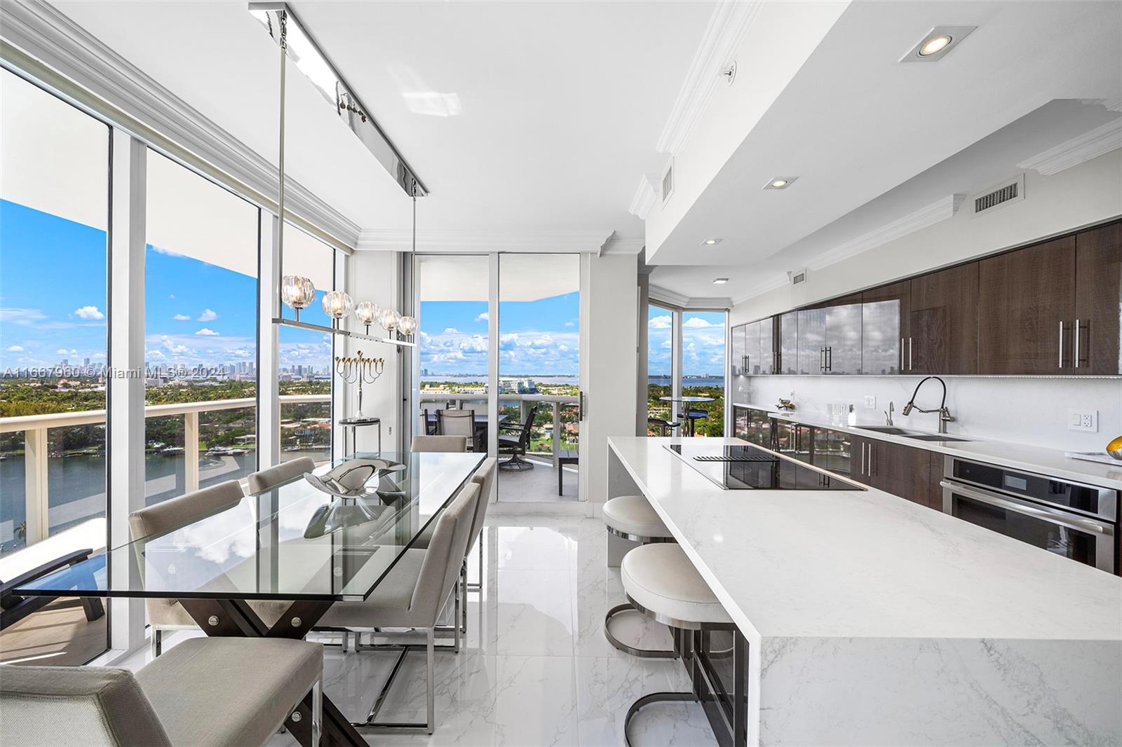 Stunning 2-bedroom, 2-bath corner unit in the prestigious Blue Diamond, Mid-Miami Beach. This beautifully renovated SW corner residence features a wrap-around terrace offering breathtaking views of the Miami skyline, ocean, and bay. Porcelain white flooring throughout creates an airy, modern feel. The open kitchen boasts high-end finishes and flows seamlessly into the large living and dining area, perfect for entertaining. The redesigned primary suite offers ample space, built-ins for generous closet storage, and an en-suite bathroom. The second bedroom also features a walk-in closet and built-ins, maximizing space and functionality. Enjoy luxury living with Blue Diamond's exceptional amenities and services, all in a prime location.