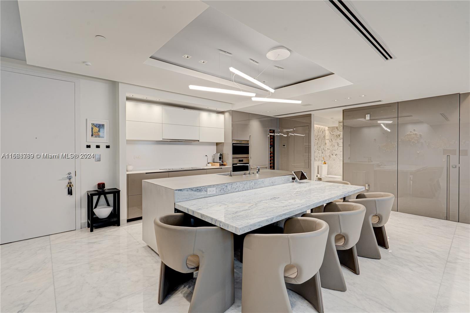 Luxury 2-Story Townhouse style condominium unit located at “Ocean House at South Beach”. This Oceanfront project consists of three luxury boutique buildings with only 28 units. This 2-bed 2.5-bath Condo went under complete renovation in 2018 bringing the sq ft living area from 1,370 sq ft to 1,586 sq ft. Remodeled with imported materials. Unit features white marble floors throughout the whole condo. New staircase with marble steps with stainless and glass railings. The kitchen has custom high-end cabinetry with Gaggenau & Sub-Zero appliances. Laundry room with full size washer & dryer. Smart condo controlled with intelligent platform by Crestron. Sold completely furnished!! Amenities include white glove butler/concierge service, billiard room, wine room, fitness center, spa & much more!