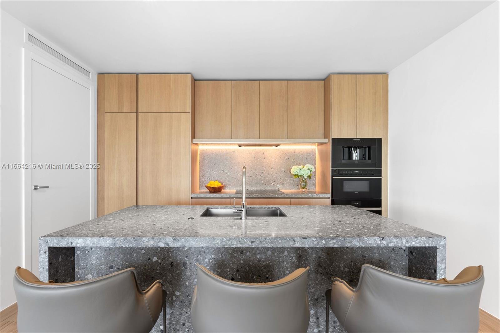 Residence 306 at Eighty Seven Park by Renzo Piano Building Workshop. This corner floorplan features 2 bedrooms, 2 and-a-half bathrooms and over 1,600 SF of thoughtfully designed interior space. Fit with a Molteni Dada white oak kitchen, complemented by stunning Ceppo Gris countertops and backsplash. The bathrooms are clad in white Macaubas stone, featuring a drench shower and a soaking tub with park views. Just outside the sliding glass walls, an expansive 1,400+ SF terrace, complete with an electric barbecue—perfect for entertaining. Amenities include a state-of-the-art fitness center, resort-style pools, and 24/7 concierge service, ensuring a lifestyle of convenience. Experience the joy of living in one of Miami's most sought-after addresses.