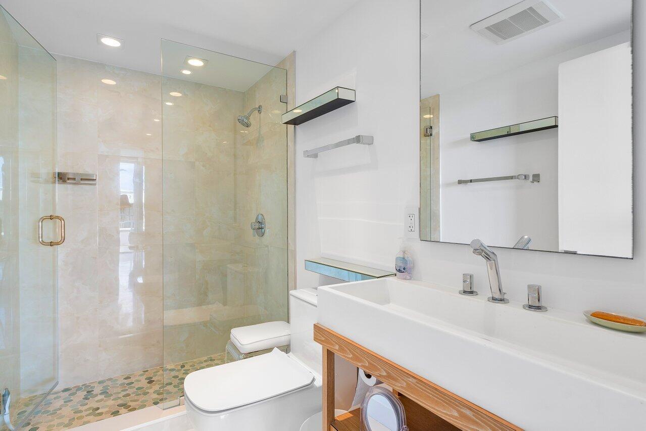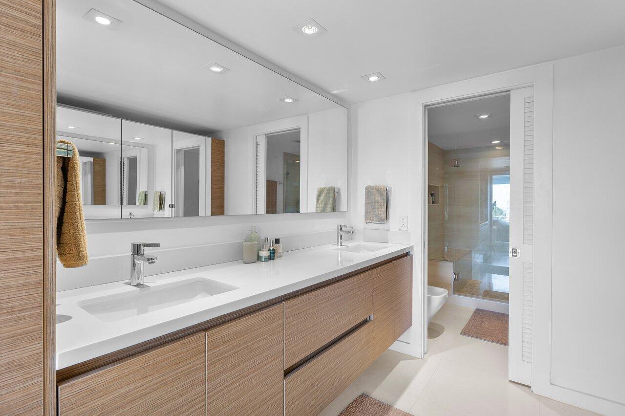 This tastefully renovated 2BR/2BA corner unit offers a large private balcony with beautiful Ocean & Intracoastal views. Inside this immaculate property are new white frame impact glass doors, limestone floors, gorgeous baths, an irresistible new kitchen, custom woodwork and exquisite detail and taste. The Cove is located directly across the street from the Four Seasons Hotel and has deeded beach rights, 24/7 Doorman, 2 parking spaces, additional storage, Guest Apartment, and one of the most magnificent landscaping and a stunning 75' swimming pools on South Ocean. This boutique building has undergone extensive capital improvement projects, adding comfort and value to this sought after Intracoastal Community.