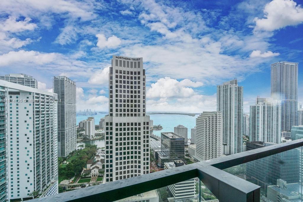 Enjoy living in exclusive Reach at Brickell City Center! Modern spacious 1 bedrooms 1.5 baths unit, large balcony with panoramic city skyline view, 11 feet ceilings, natural stone floors throughout, Italian kitchen cabinets, top of the line appliances, quartz countertops, wine bottle storage, elegant bathrooms with soaking tubs and frameless glass enclosed showers, impact doors and windows. 5 stars building amenities include full gym & SPA, heated pool, Jacuzzis, BBQ area, children play area, business center, 24-hours concierge, valet service.