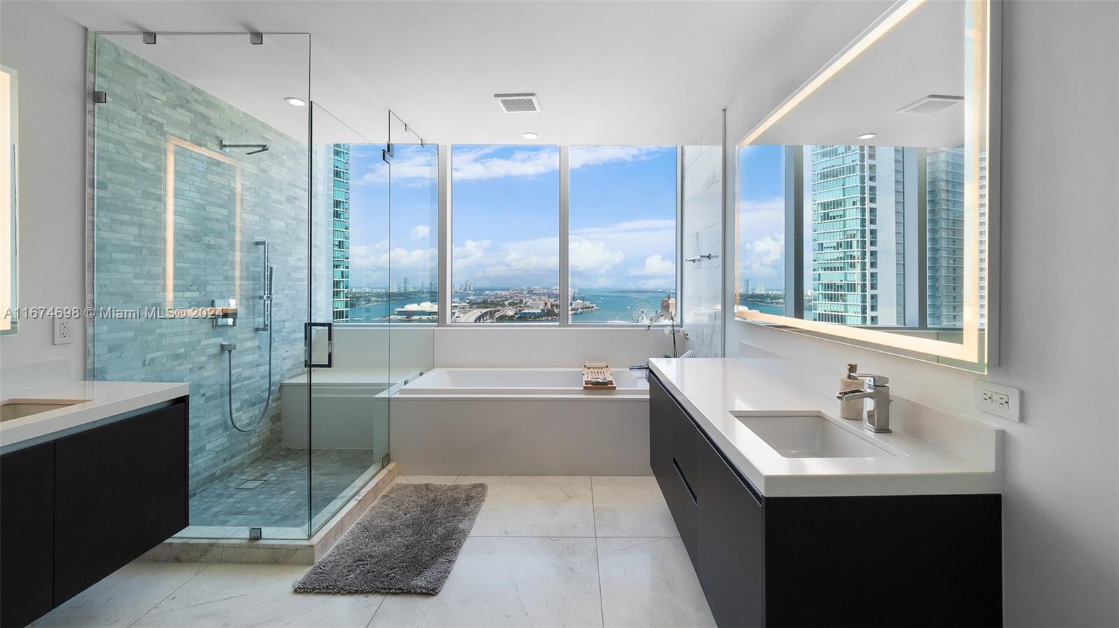 Paramount Miami Worldcenter • MUST SEE TURN- KEY exclusive unit with amazing views of the bay, ocean and skyline. Come visit this fully renovated unit, including custom wallpaper, upgraded porcelain flooring, studio lighting and much more! The building you never have to leave includes every amenity including access to all different amenities such as 5 pools, private jacuzzi’s, a full spa including massage chairs, outdoor lounge and bbq areas, game rooms, state of the art fitness center, boxing studio, basketball court, racquetball, yoga, observatory, jam room and recording studio, and much more. Just steps from Kaseya Center, Port of MIA, AA Arena and minutes to MIA Airport, Wynwood, and Miami Beach.