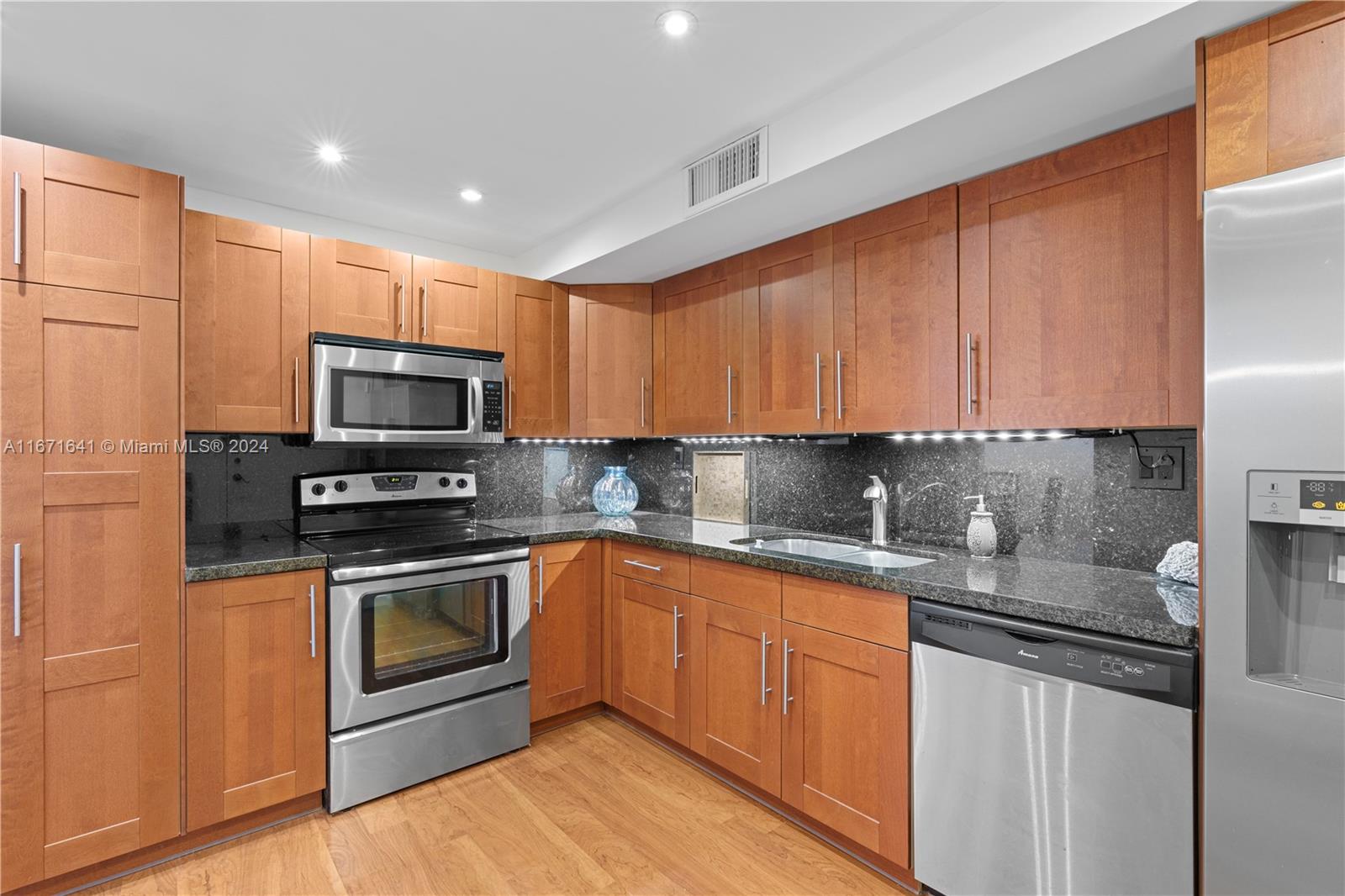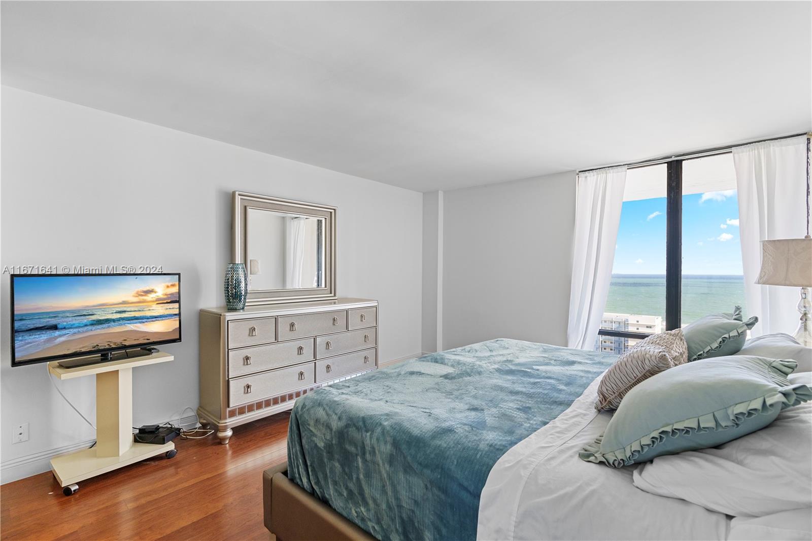 MAJOR PRICE CHANGE TO $335K. LOWEST IN BUILDING! ACT NOW! Spectacular ocean views from this 18th floor home in the sky. large 2/2 with amazing sunrises. Kitchen, richly redone w/warm cherry wood cabinets, onyx black marble lighted counters w/recessed ceiling lights and stainless steel appliances. Primary bedroom has a large walk in closet along with separate his and hers sinks and beautiful ocean views. Second full bath nicely redone. Lovely wood floors throughout, storage closet in unit. Large glass balcony w/hurricane proof patio doors. Amenities include, bike storage, extra storage locker, equipped gym, heated pool, 24 hour security, Mgr. on site, ocean across the street, airport 15 mins by car, Hollywood boardwalk a short stroll. Small pets allowed, rent right away per cap rate.