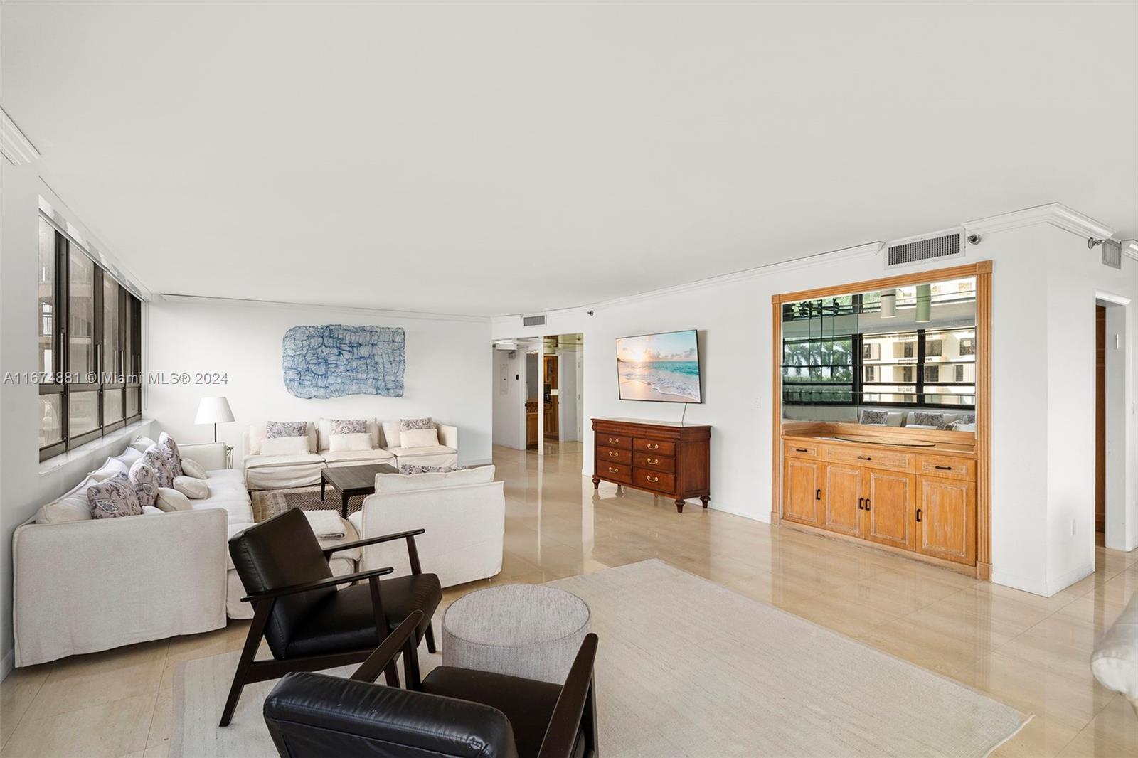 This spacious residence features 2 large bedrooms, 2.5 bathrooms, and spans 1,967 square feet. This beachfront building offers exclusivity with only 135 units. Enjoy exceptional comfort in this full-service building, complete with dedicated onsite management. The newly remodeled lobby, gym, and movie theater has been tastefully designed. Current assessment in place to update balconies, pool deck and outdoor Gym/spa structure. Great value to purchase before updates are completed.