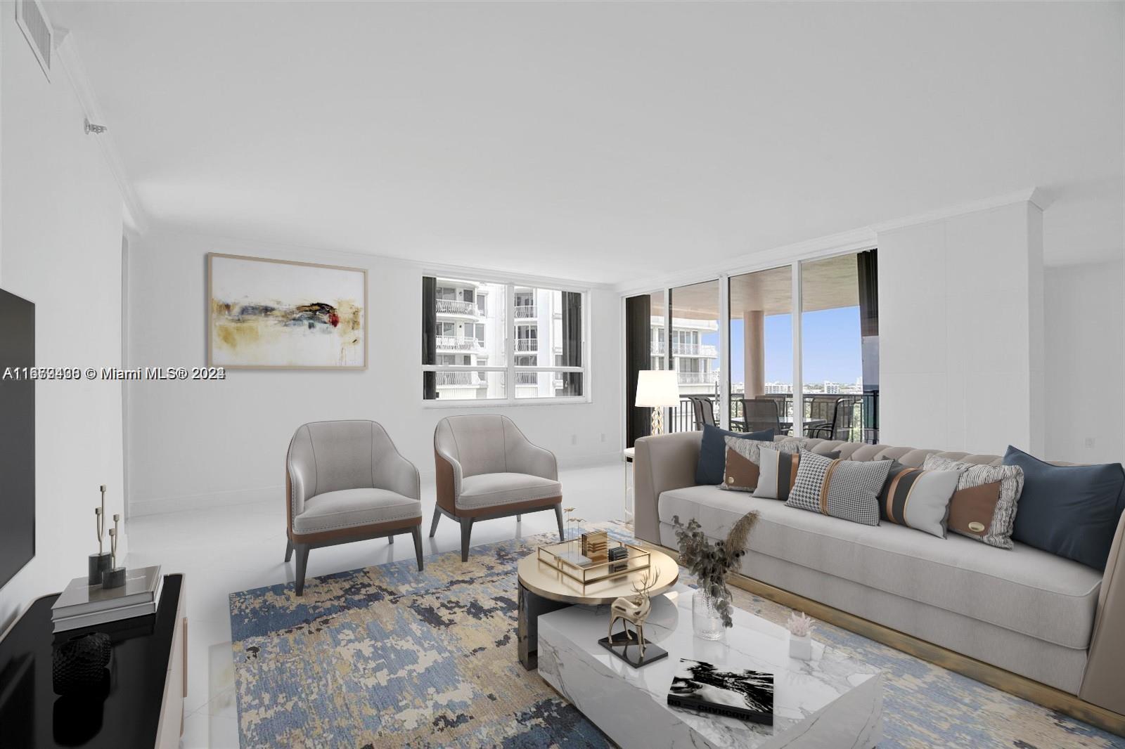 Welcome to luxury living at its finest! This expansive 2-bedroom, 2.5-bathroom condo boasts 2,018 sq ft of beautifully renovated space, perfectly positioned on the 9th floor with stunning water and ocean views. With two private balconies, you'll have the perfect spots to relax and soak in the coastal ambiance. Enjoy the convenience of two dedicated parking spaces and extra storage. The high-end building offers exceptional amenities, including a theater room, party room, 24-hour security, valet service, and a front desk with an on-site property manager for your peace of mind Stay active with access to an oceanfront pool and a fully-equipped gym. This condo is currently under renovation allowing you to customize your dream space while enjoying the luxurious lifestyle Bal Harbour has to offer
