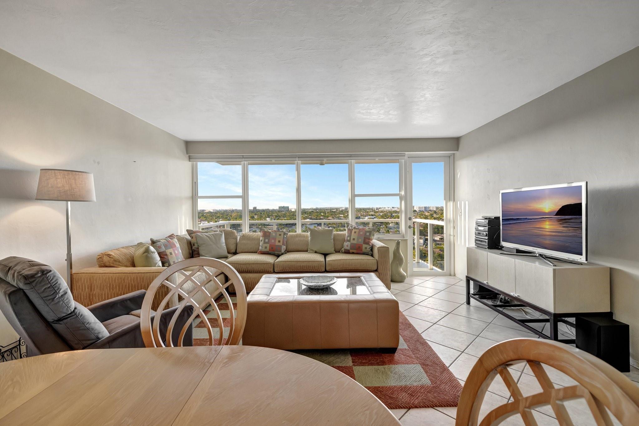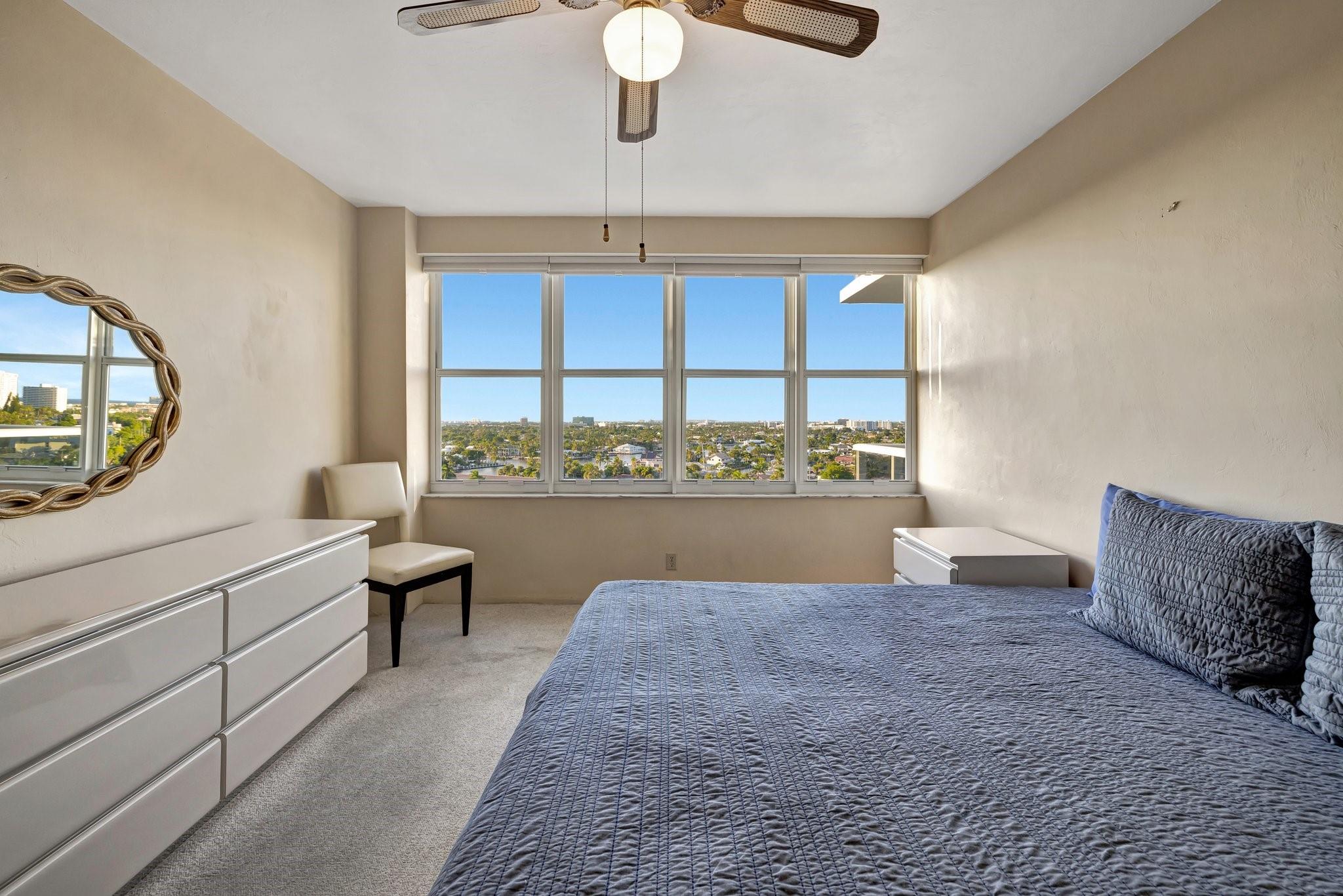 Discover this 12th-floor, 2-bedroom residence boasting stunning views of the Intracoastal with multi-million dollar homes and yachts below. Envision the potential as you reimagine the space to suit your style with an abundance of natural light and a picturesque backdrop for your future oasis. All condo requirements have been completed with A+ insurance rating. Resort style setting on 5+ acres of beautifully landscaped grounds including a heated pool, bocce ball court, fitness center, new roof, hurricane windows throughout, updated glass balconies and 24/7 security. Clubhouse directly on the intracoastal is perfect for your sunset bbq's or watching the boat parades. Prime location near local attractions, dining, and beaches. 55+ community, no renting.