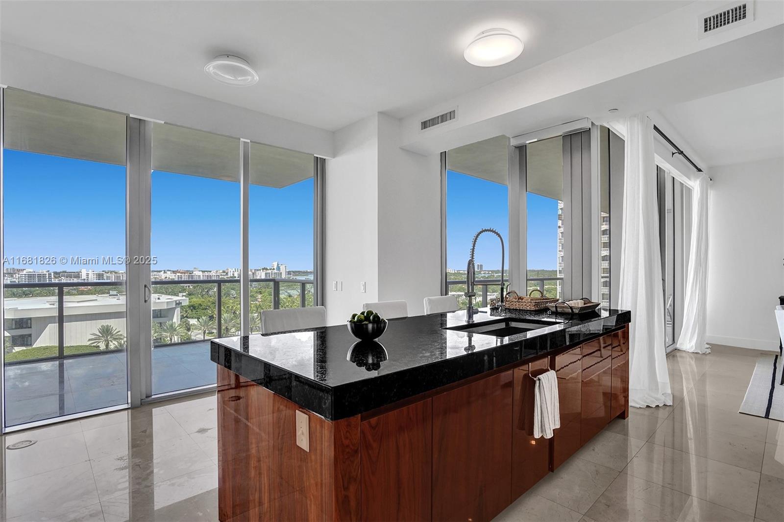 This spacious flow through 3 bedroom condo offers breathtaking, panoramic views of both the ocean and Intracoastal Waterway. Multiple terraces allow residents to enjoy both sunrise and sunset views. Includes a formal living room, den, expansive kitchen with terraces large enough to extend living space outdoors. Fully automated for ultimate convenience. Access to premium hotel services including multiple pools, full beach service, dining options, spa and fitness center, concierge, valet, & personalized butler service. Designed for ultimate luxury and convenience, ideal for those seeking a refined, resort-style living experience with impeccable services and amenities. Across the street from the prestigious Bal Harbour shops, and walkable to to restaurants and shops in the area. Furnished.
