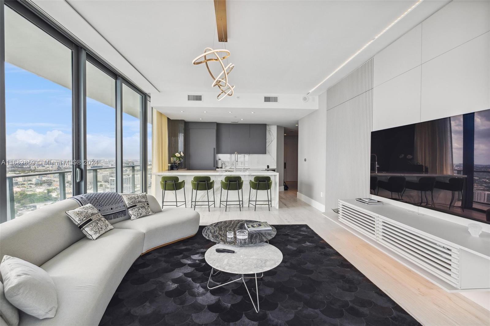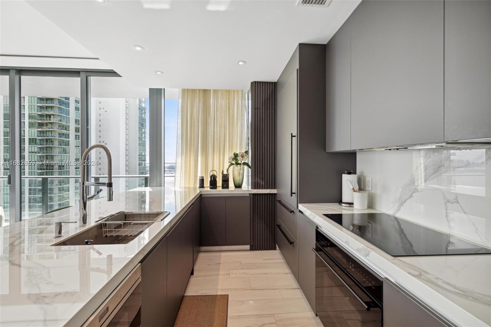 Gran Paraiso magnificent unit, 4 bed, 4.5 bath corner unit with bay and ocean views and breathtaking night city views. Wraparound terraces, floor to ceiling windows, 10 foot high ceilings, open concept floor plan, private elevator access, high-end kitchen appliances, Sub-Zero refrigerator, spacious walking closet. Beautiful Italian kitchen design. Great location, minutes from downtown Brickell, cultural, financial, and commercial centers, art and design district, port and international airports. Resort lifestyle, spa, state of the arts fitness center, bowling alley, tennis court, putting green, children playground, pools, and much more.