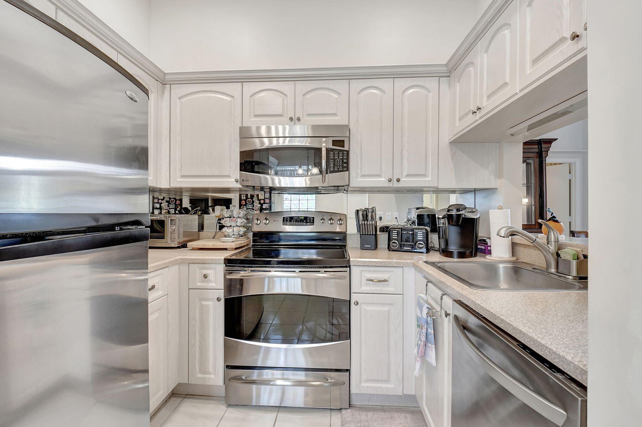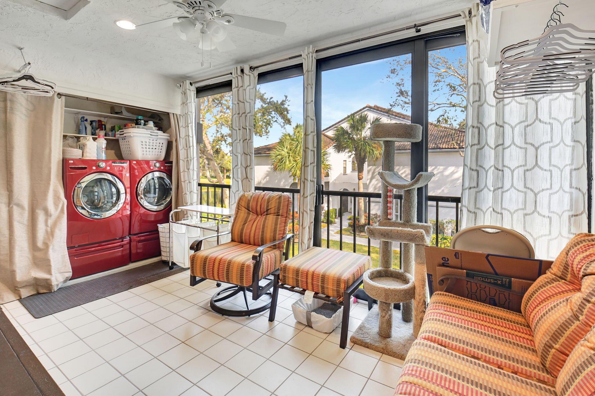 This 2nd floor, 3 BEDROOM, 2 FULL BATH condo has many features you will not find in other units in Platina. ALL windows and sliding glass doors are HURRICANE IMPACT! All ceilings have had the popcorn removed. There is EXTENSIVE LIGHTING throughout including inside the kitchen cabinets. All living areas have recessed lighting. All the bedroom closets have been custom fitted. The second and third bedrooms have shades that can be raised and lowered from both the top and bottom. There is an abundance of extra storage throughout. All kitchen appliances are stainless steel. Front-load washer and dryer with storage below. Newer AC. Included in the sale is the safe bolted to the floor in the master bedroom as well as all the mounted televisions.