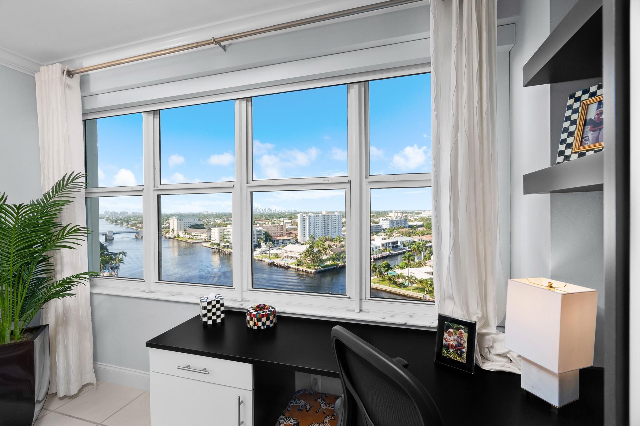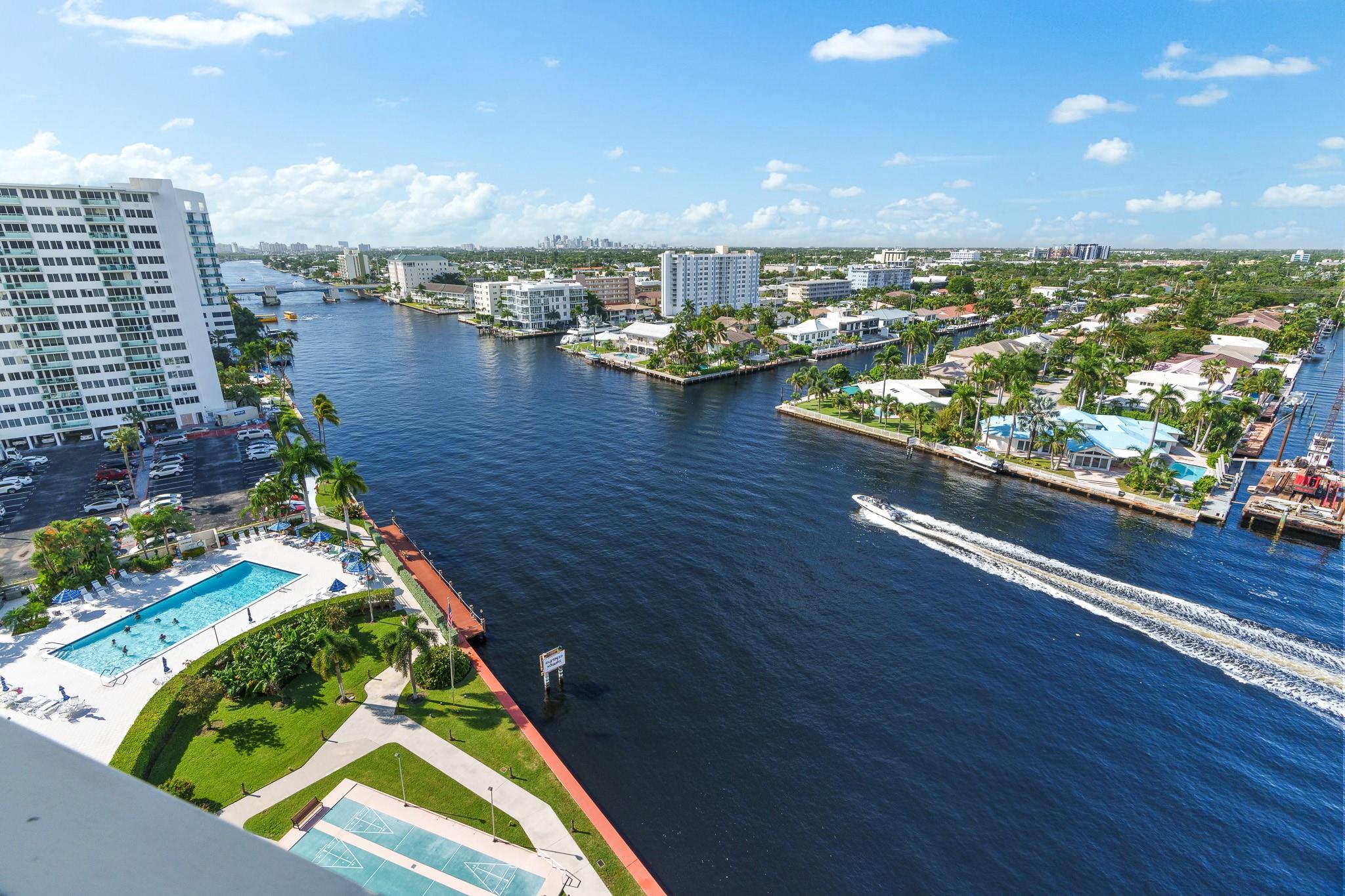 Introducing 3200 NE 36th Street #1407. This apartment is fully renovated and has amazing views of the Intracoastal and the city. The kitchen has new stainless appliances and counters and the modern bathrooms are stunning with step-in showers, custom closets. The guest bedroom has a Murphy bed for multi-purpose use and guests. No modern convenience has been overlooked for ease of living and entertaining. The safety of hurricane impact windows ensure peace of mind and quiet enjoyment. Situated in the highly sought-after Coral Ridge Towers North, you'll experience beachside living with 24/7 security, onsite management, and an array of top-notch amenities. Conveniently located on the barrier island, close to shopping, grocery stores, and restaurants. 55+ community and no pets allowed.