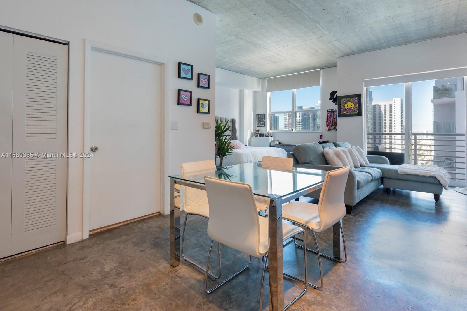 Welcome to our modern loft-style apartment in the heart of Miami. Unit features 10-foot ceiling, impact-resistant windows, and sliding glass doors that offer stunning skyline views. The finished concrete and tile flooring give a sleek and contemporary feel, while the fully-equipped kitchen with granite countertops and stainless-steel appliances make cooking a breeze. Enjoy the convenience of a private balcony and in-unit washer/dryer. Stay active in our state-of-the-art gym with a 180-degree view, or relax by the pool on sunny days. Experience luxury living at its finest in our Miami apartment. Contact us today to schedule a tour!