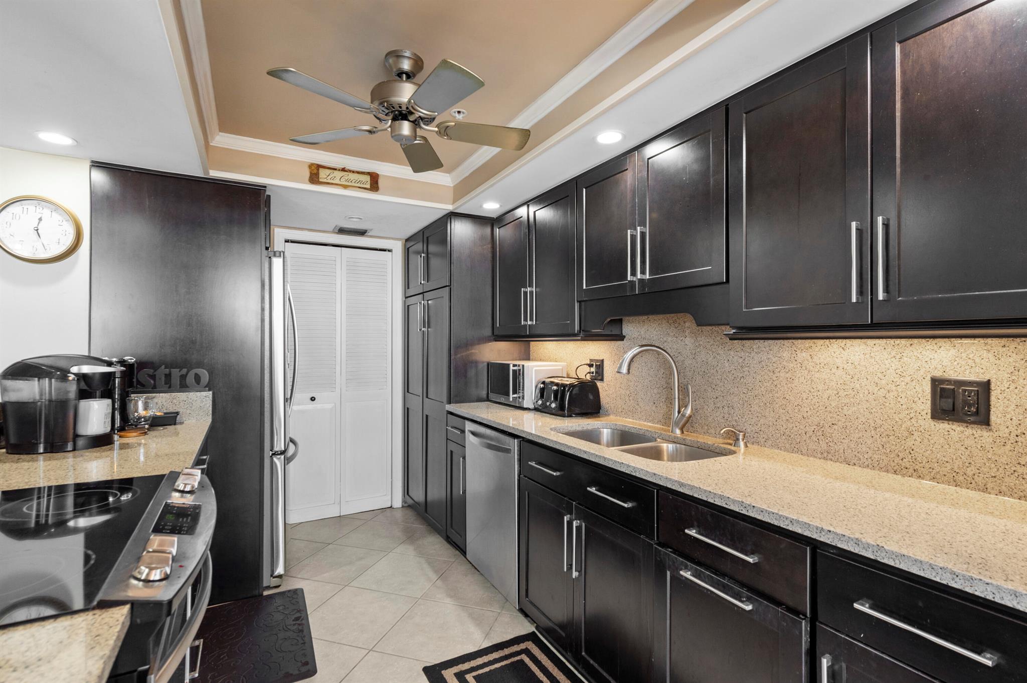 Renovated 1 BR 1.5 BA waterfront apartment in Porta Bella Yacht and Tennis Club, a highly sought after gated waterfront community. This spacious apartment is just under 1000 sq. ft, and features an open concept kitchen, tile floors though-out living room and kitchen, and a large balcony perfect for entertaining friends and family, or watching the many yachts cruise by. Porta Bella East offers many amenities such as tennis courts, fitness facilities, boating accommodations ($2.50 per ft), and resort style pool overlooking the intracoastal. Google Porta Bella East for more information.