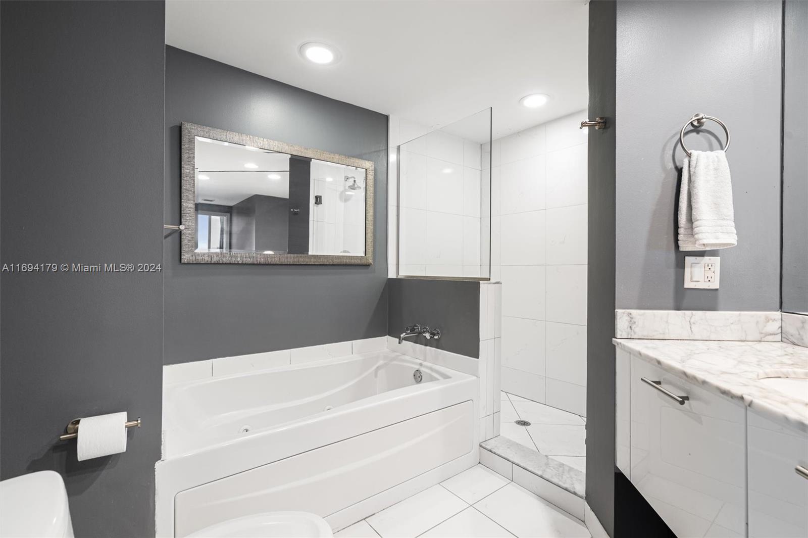 Welcome to your urban oasis in the heart of Brickell! This stunning 2/2 corner unit perfectly blends luxury and convenience. Open-concept living space filled with natural light from floor-to-ceiling windows, offering breathtaking views of the city skyline. Entertain on the spacious balcony, ideal for sunrise and sunset views. The primary suite is a serene retreat with a soaking tub and separate shower. In-unit washer and dryer. Amenities include 3 pools, cold plunge, fitness center, 24-hour concierge for ultimate comfort.