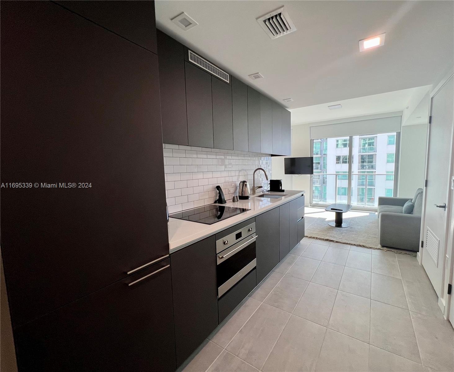 Great for an investor, Short-Term rent allowed. A beautiful studio unit- TURNKEY studio in prime downtown Miami area. Apt is fully equipped with European kitchen and top of the line appliances, washer and dryer in unit. French door balcony, partial water view, FTX Arena. High-quality modular furniture, smart device keyless entry, rain shower, smart TV, book self-service, a space where functionality is catered for and where every inch is usable space. Excellent walkability, public transportation across the street, close to major sports, entertainment events, and restaurants. Just 15 minutes from Miami International Airport.