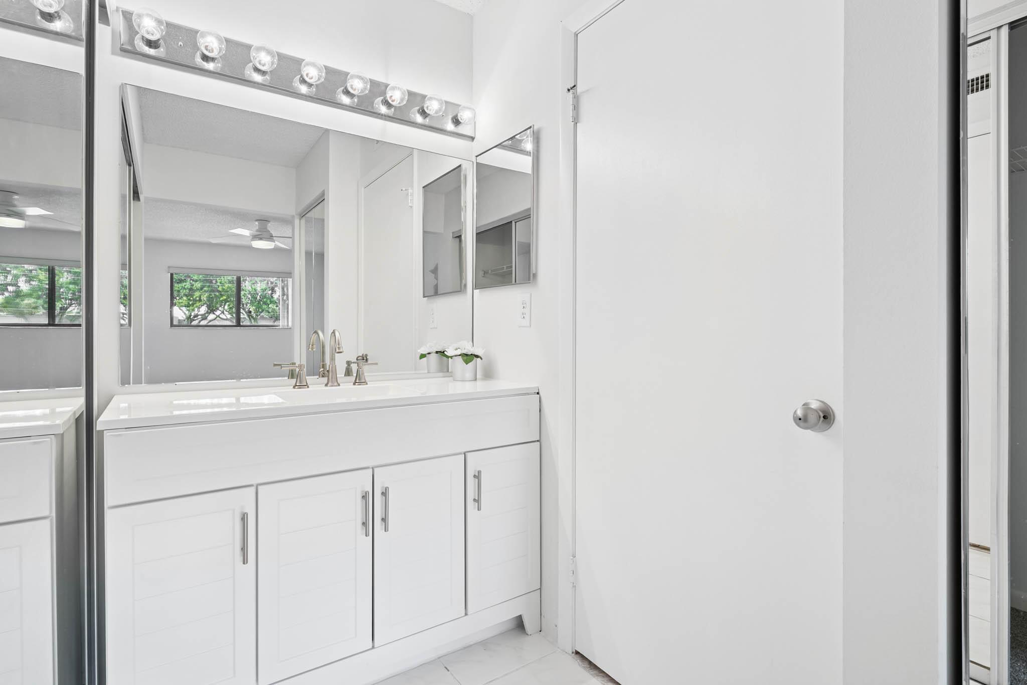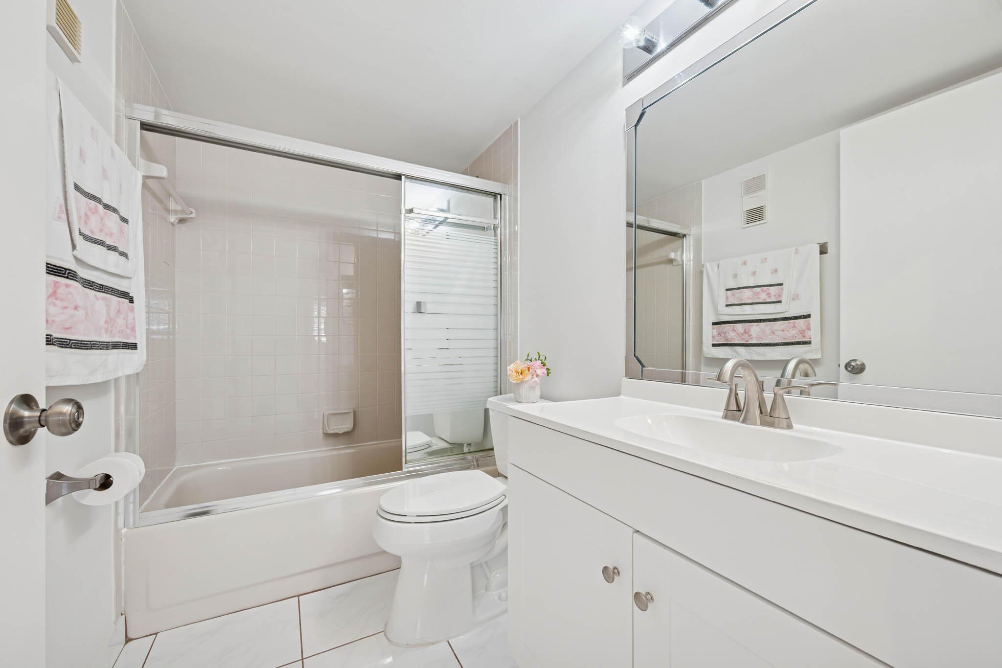 RESORT LIVING ! Active Lifestyle 55+ 2nd Floor Condo End Unit, Fully Updated. New Kitchen with Granite Countertop & Stainless Steel Appliances. Updated Bathrooms, Hardwood Floor, luxurious Carpet in Master Bedroom. This 2 bedroom 2 bathroom home with Enclosed Patio. Open floor concept. Gardens view, and the ELECTRONIC LIFT next to the unit. Semi Furnished with Living ,Dinning Room, & Guest Room furniture, Just bring your Bedroom Set. Nestled in the very private and most Desirable LAKES OF DELRAY Community. Building features 4 units, New Roof installed July 2024. No Pending ASSESSMENTS. Community Features Large Clubhouse with State of the Art Theater for scheduled Live Performances, Library , Gym, and Game rooms. Pool, Sauna, Tennis Court, Golf, Pickle Ball, Bar B Que Grill & MORE