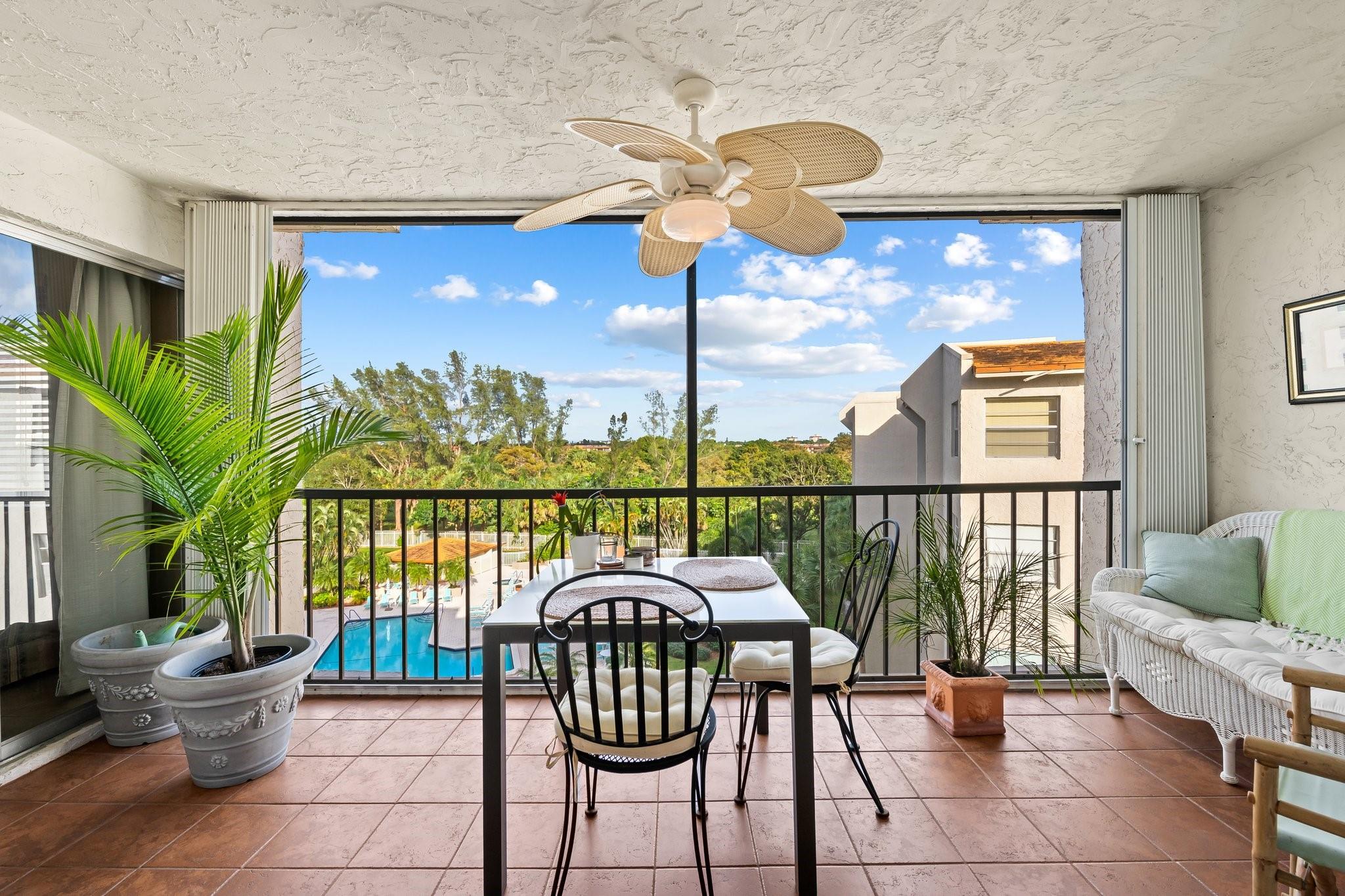 Welcome to The 18th Hole! Your dream home, Unit 608D, awaits! This Fully-Furnished corner unit offers 3 spacious bedrooms and 2.5 beautifully renovated bathrooms within 1,760 square feet of tastefully updated living space. Enjoy the modern comforts of an in-unit washer/dryer and renovated kitchen with granite countertops and attractive backsplash. The inviting living area features recessed lighting and tile floors, while the bedrooms boast cozy carpet. Step out onto your private balcony and experience breathtaking pool views or enjoy the community's extensive amenities, including heated pool, gym, tennis court & more. With on-site parking, manned security gate, & all furnishings included—from fine china to bedroom sets—this home is move-in ready. It's time to start living your best life!
