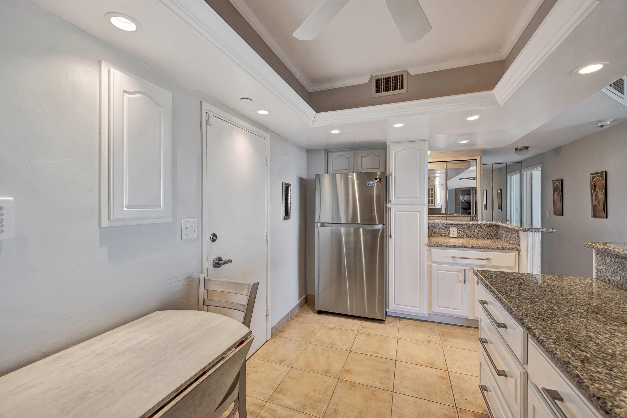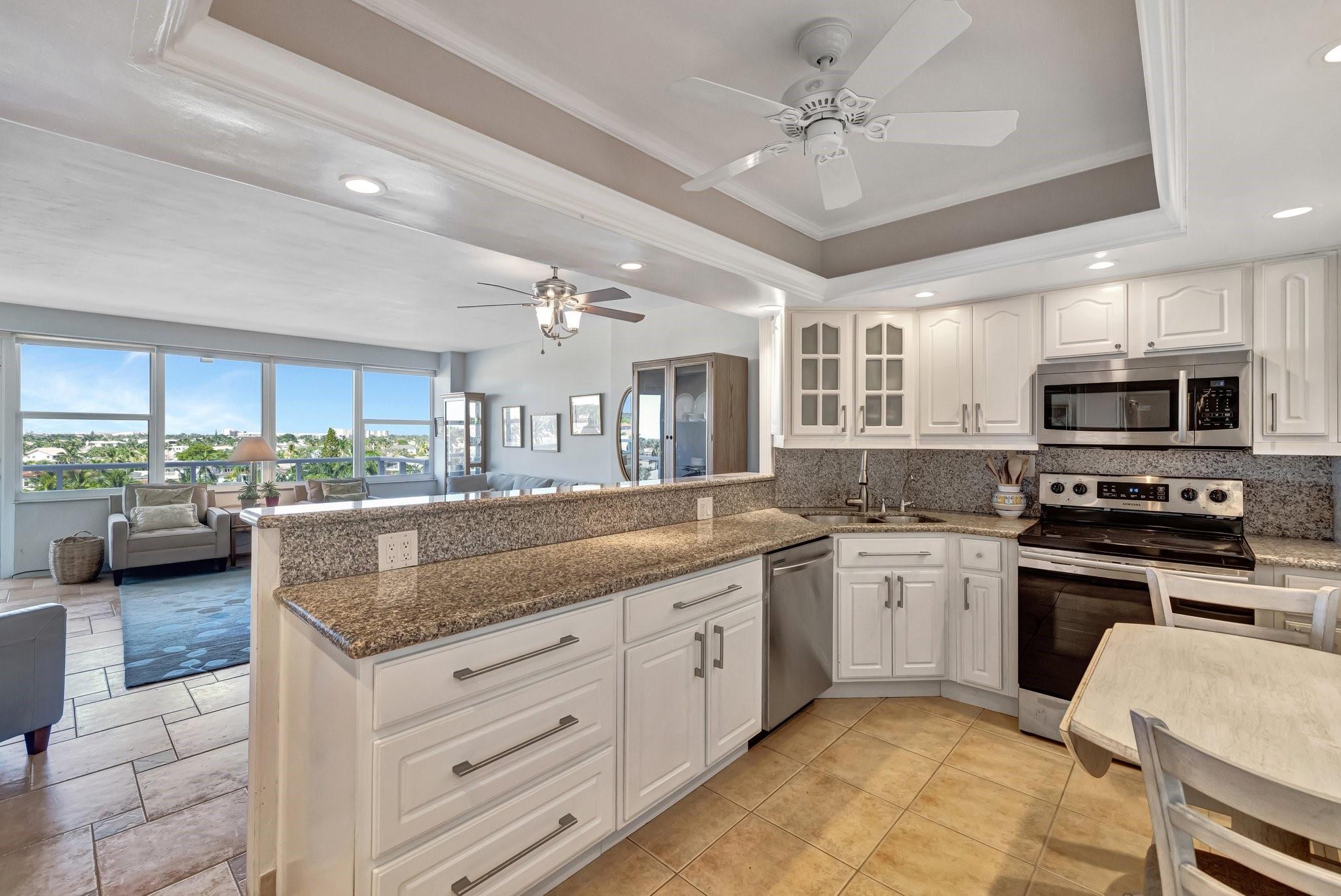 TOTALLY REMODELED, MOVE IN READY WITH GORGEOUS CHEF'S KITCHEN. This is a really lovely residence with a peaceful northern view over the tops of multi million dollar homes and lush landscaping. This building has so many updates that the insurance was actually lowered for 2025. FINANCIALLY SECURE WITH FULLY FUNDED RESERVES. NO UPCOMING ASSESSMENTS. 55+ community with numerous social activities, fitness center, HUGE heated pool and bocce ball court on tropical 5 acres. Next to the beach, numerous restaurants, retail, entertainment, golf and boating. IntraCoastal Clubhouse, on site management and 24/7 security. Water, sewer, trash, basic cable and internet included in maintenance.