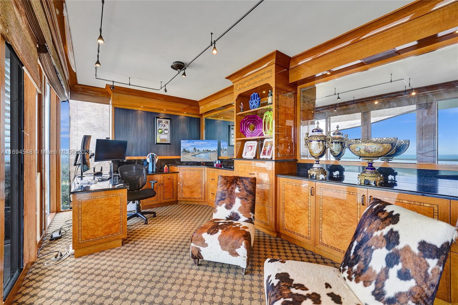 Exquisite Direct Ocean & Breathtaking Panoramic Bay Views in this unique opportunity featuring two combined units 1108-1208 with two separate FOLIO NUMBER, offering over 5,300 square feet of space. This custom two-story residence boasts 5 bedrooms, 6.5 bathrooms, two offices, a media room, a den, and a spacious kitchen with handcrafted finishes and panoramic ocean views. From your private foyer you'll be drawn to the blues of the ocean on your right, a private balcony. A seamless flow through layout, perfect for entertaining guests, relaxing serenity, 2 balconies, split bedrooms ensuring maximum privacy & comfort, gleaming marble floors, laundry-utility room. Truly magnificent living experience with state-of-the-art amenities. Perfect sanctuary to indulge & recharge. Make this your reality