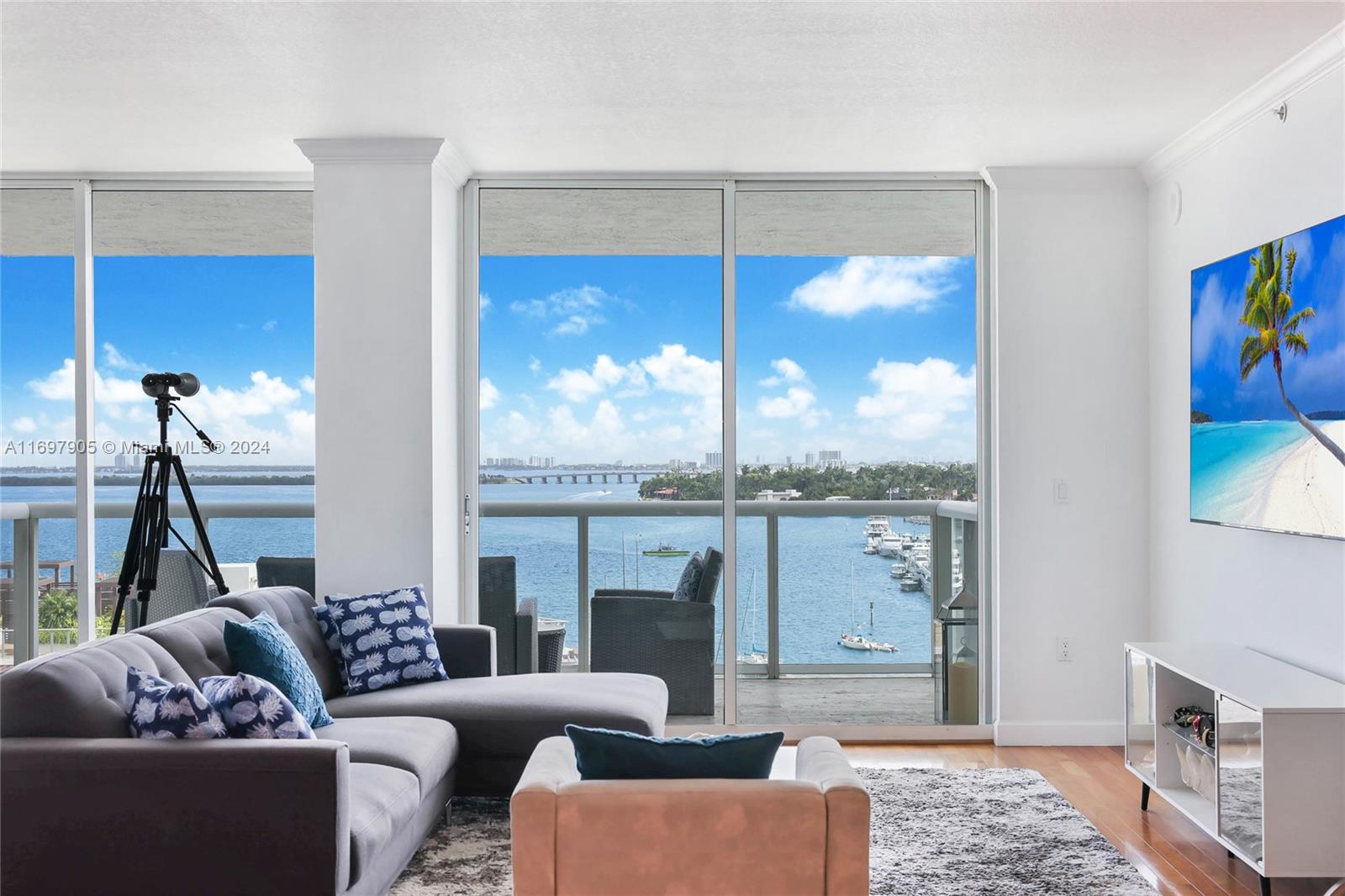 LIVE IN ULTIMATE LUXURY! A boutique luxury condominium located on the exclusive Venetian Islands; surrounded by community parks, spectacular bay views and walking distance to over 200 shops, fitness labs and restaurants. The expansive bay views, combined with oversized balconies creates an optimal indoor/outdoor living experience where sunrise and sunsets are savored and enjoyed. Natural light streams through the floor to ceiling windows and doors showcasing the open spacious floorplans. Five star amenities include a contemporary resort style pool, tennis court, brand new state of the art fitness center, 24 hour doorman, valet and on site management. Amazing views of marina and Edgewater. Can be sold furnished or unfurnished.