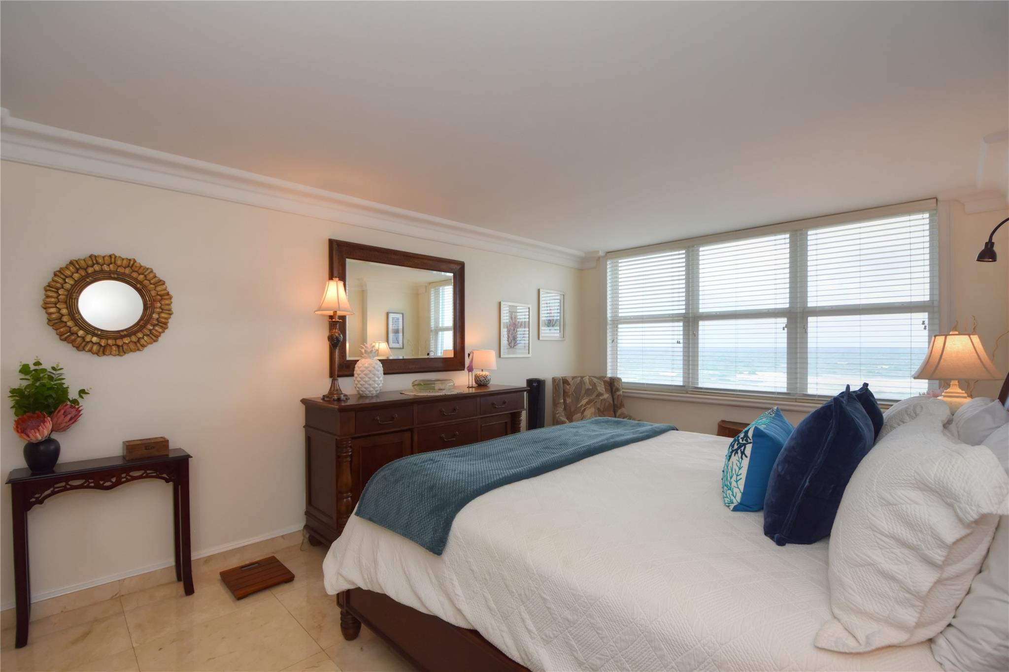 HUGE PRICE REDUCTION. CHECK THIS OUT. INVESTORS STOP & THINK. EXCELLENT OPPORTUNITY .Entering, you are amazed at the breath taking view. The view stretches from the lighthouse to the pier. encompassing direct ocean waves, coveted sand dunes & blue sky. The appointments are fabulous. There is no substitute for class. Chiefs Kitchen is opened using marble counter tops & stainless steel. No cost has been spared making this unit unique. Designer furniture featuring Tommy Bahama combines a blend of comfort & elegance. So many extras. Large bedrooms w/ walk in closets. Oversized balcony. Upgraded from the ordinary. Take advantage of buying the best unit in the best bldg. at a unprecedented price. It is totally turn key. Garage parking 24 hr. security. Generous balcony size.