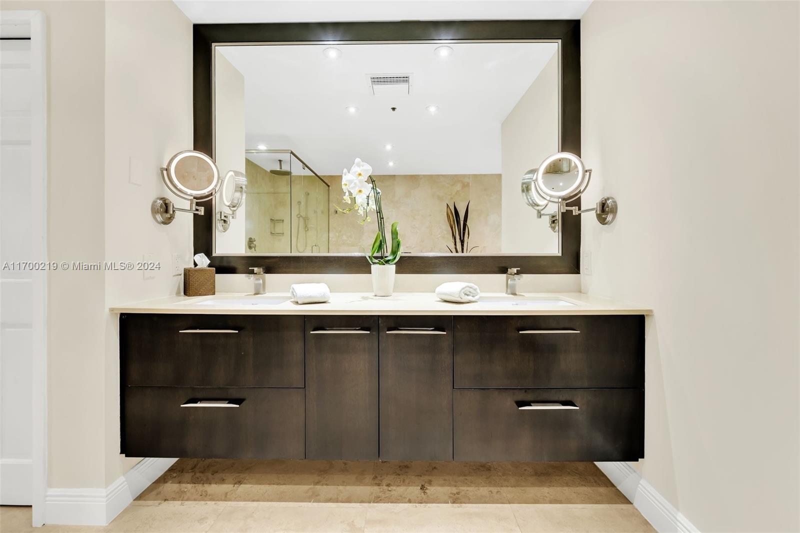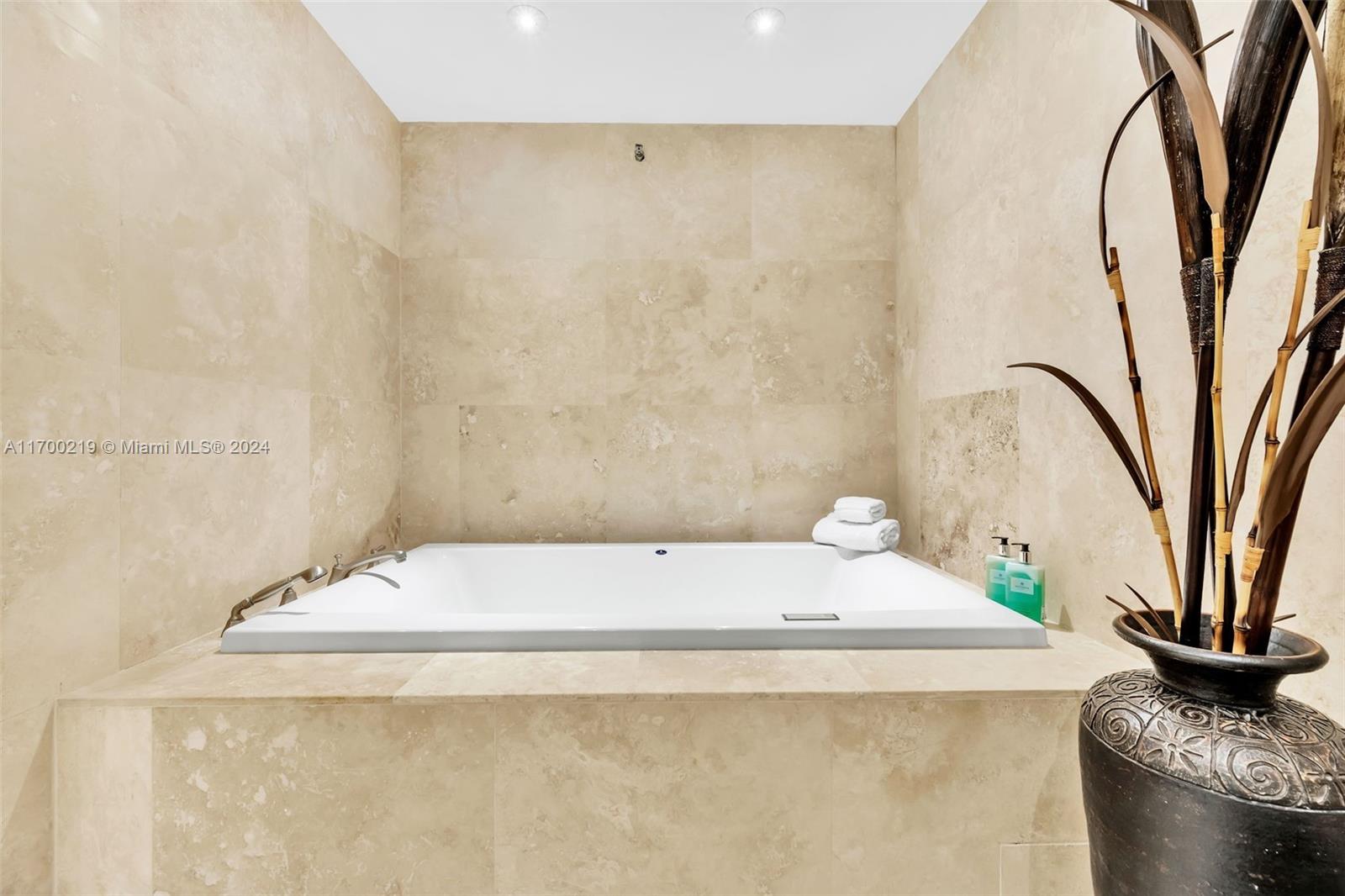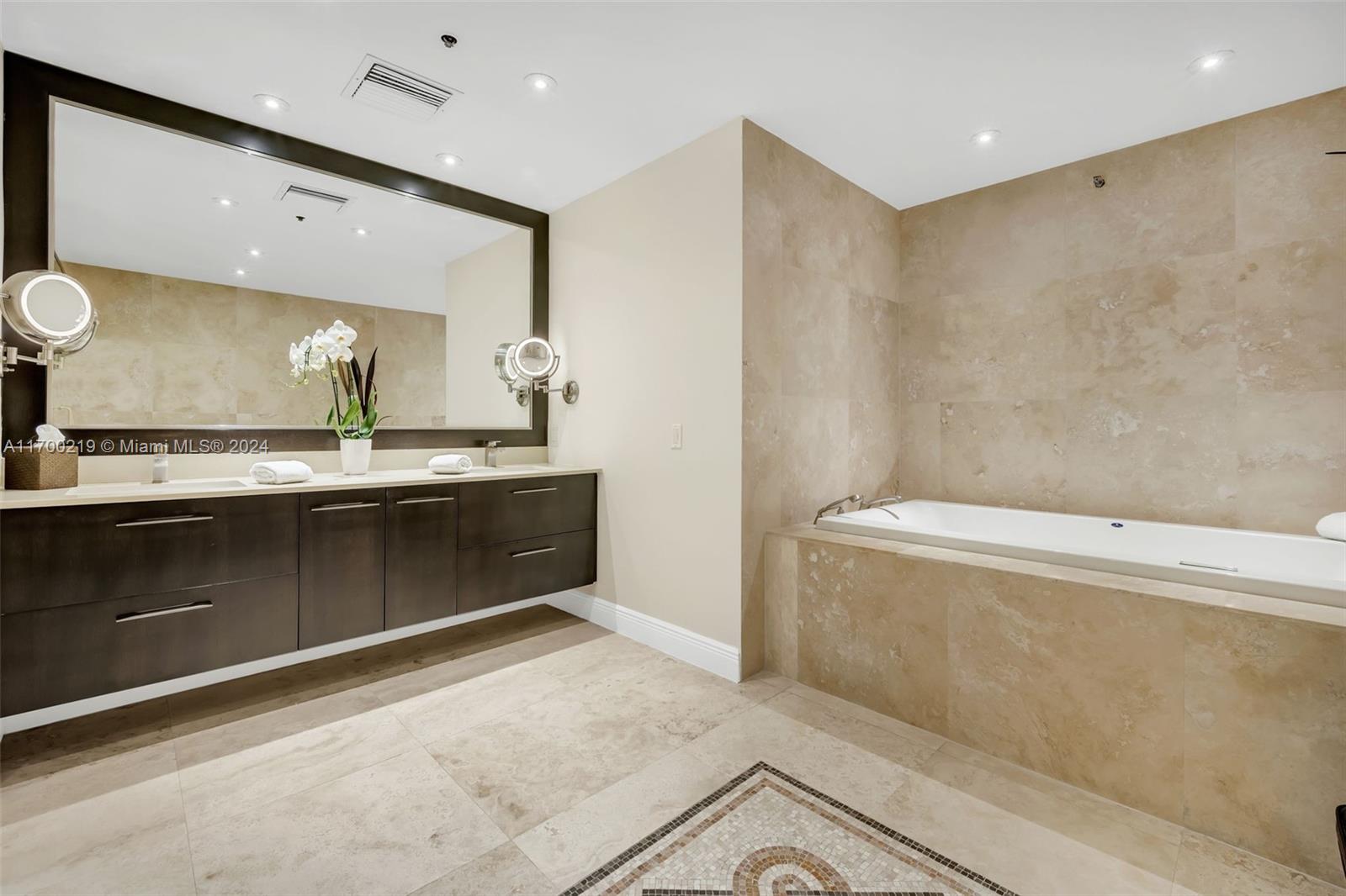 Impeccable ground level 3BR, 3.5 baths on Bayside. Updated in 2019 with contemporary relaxed decor, and luxurious finishes, pristine marble floors throughout, 10.5ft ceilings, OPEN chef kitchen features marble countertops, stainless steel appliances, built-in custom cabinetry, an updated SONOS media system, and Smart Home. Garage space(s) feat. brand new Tesla Charger, two best parking spaces, golf cart space, and Garia golf cart. Conveniently located adjacent to the pool. “D” model is one of the most sought-after split bedroom floor plans on the Island boasting a deep wraparound terrace with stunning panoramic Bay and city skyline views and mesmerizing sunsets. All windows and doors are impact glass. New central VAC.