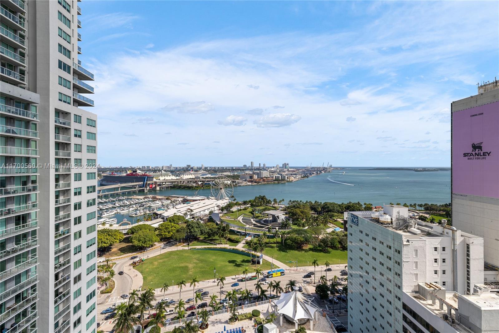 Welcome to this stunning waterfront 1-bedroom, 1-bath residence on the 24th floor of the luxurious Vizcayne South Tower. Enjoy incredible sweeping views of Biscayne Bay and Miami Beach from your spacious private terrace. The unit boasts 9 ft ceilings, floor-to-ceiling windows, and elegant white glass porcelain floors throughout. You'll love the contemporary light fixtures, marble bath and shower, and a European-style kitchen equipped with stainless steel appliances. This amazing residence also includes a walk-in closet and comes with 1 assigned parking space. The Vizcayne building offers first-class amenities, including a state-of-the-art fitness center, a full-service spa, four luxurious pools, a jogging track, a party room, conference rooms, valet service, and much more.
