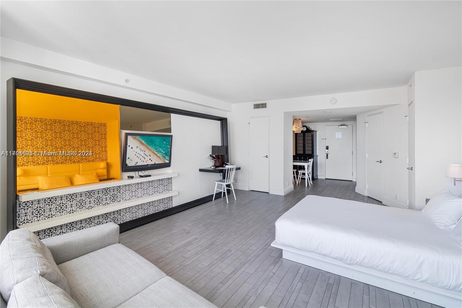 Beautiful and one of kind studio at the very desirable Mondrian Condo Hotel.Turnkey apartment ready to live or rent with no rental restrictions. Amenities include: Colorful sun deck, 75-foot infinity-edge heated lap pool chic & serene cabanas along the pool deck, lava rock sauna, bar with poolside service, Agua spa featuring wet and dry treatment rooms with whirlpool, meditation garden, a fitness center with yoga studio, an art studio & gallery, a wine cellar, 24-hour valet parking, security and secured gated entry, 24-hour concierge, a 40 boat slip marina and much more. Very centrally located and close to all shops & restaurants.