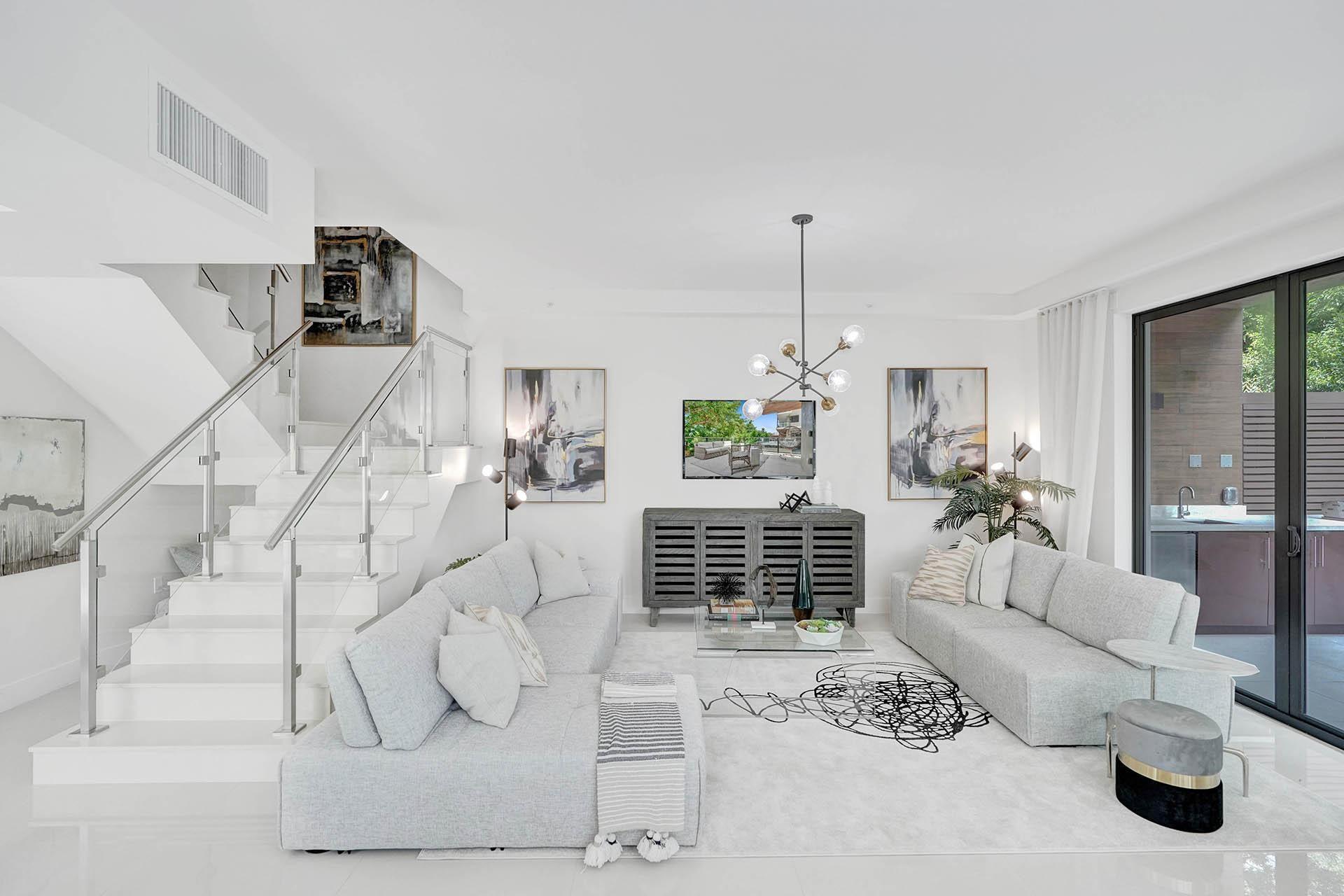 Newer construction-corner 2-story condo w/floor-to-ceiling glass lets the light pour in & has views of lush greenery, bringing the outdoors in. Beautiful large gourmet kitchen has high-end finishes w/subzero & wolf appliances, quartz counters & Italian cabinetry. Direct elevator entrance into this move-in ready property furnished w/a neutral palette. Huge terrace w/summer kitchen & backyard atmosphere. Private home feel w/the convenience condo living. Large main bedroom w/double w-i-c. Bedrooms are ensuite & have balconies. 2 covered parking spaces & storage closet. 2-story clubhouse w/pool, fitness center & more. Maintenance fee incl. EVERYTHING except electric. This amazing residence is very close to restaurants, shopping and only 600 ft to the beach! Pets welcome. 2 parking spaces.