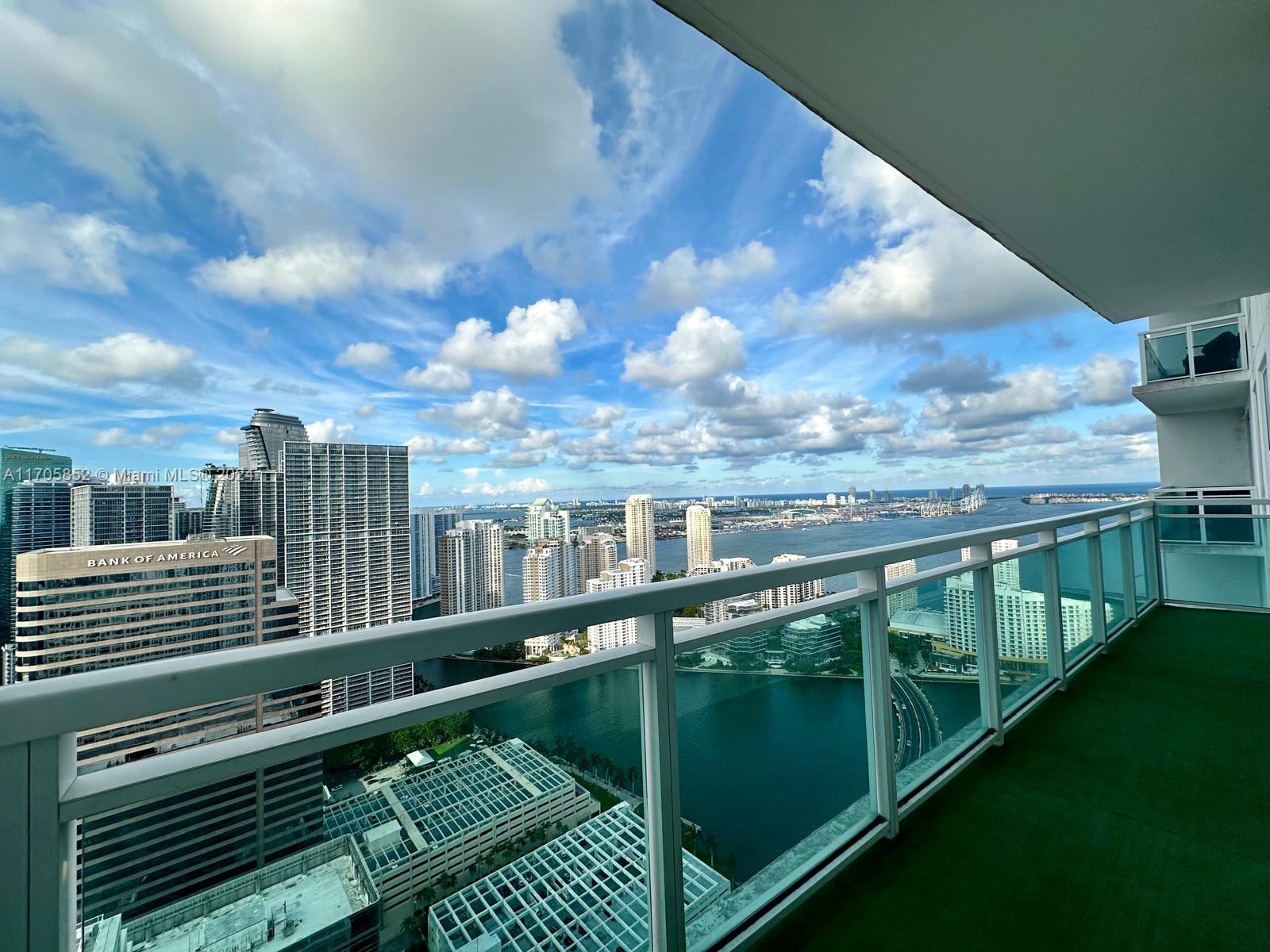 BEST VIEW. LOW HOA, FINANCING AVAILABLE - Experience luxury living in this stunning 2-bedroom, 2-bathroom sky-high retreat, breathtaking water/city views from the 48th floor. Nestled in the heart of Brickell, it is a walker's paradise: Brickell City Center (5 MIN WALK), banks (2MIN), restaurants (3 downstairs), 5 MIN walk to the Brickell attractions, and Brickell Key walk path. Revel in the elegance of higher ceilings and upgraded stainless steel appliances, stackable washer and dryer, complemented by chic wood flooring throughout. Unparalleled amenities including 2 pools, jacuzzi, Zen Garden, rejuvenating spa, state-of-the-art gym, relaxing sauna, a theater, a fully-equipped business center and children's room. Low HOA, assigned parking. UNIT REPAINTED, MINT CONDITION. Easy to show.