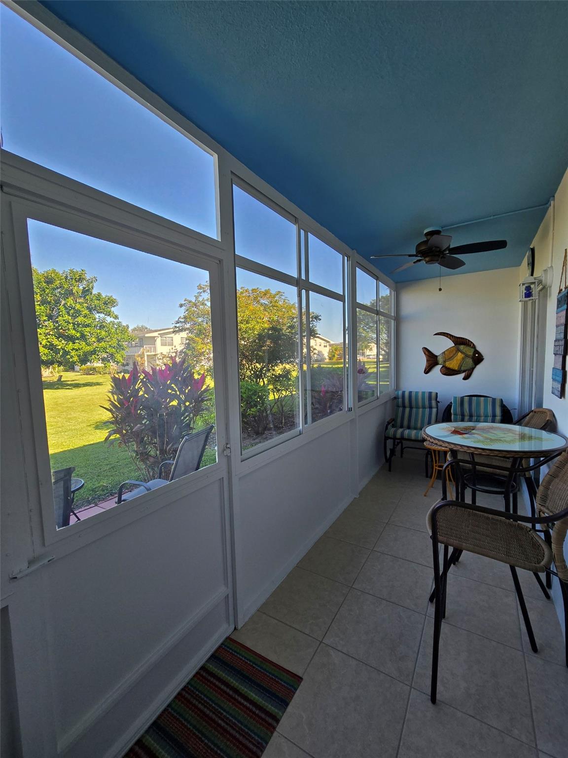 FIRST FLOOR REMODELED FRESHLY PAINT 2 BEDROOM 1.5 BATH UNIT in a great location. Very well maintained condo , fully furnished, ready for you to move in. IMPACT WINDOWS in front, outside pavers , NEW bathrooms. Ceramic tiles throughout the entire condo. Enjoy your morning coffee with the lovely garden view from the enclosed Florida room. Amenities include club house, large swimming pools, theater, tennis, free transportation and much more. 55+ community.
