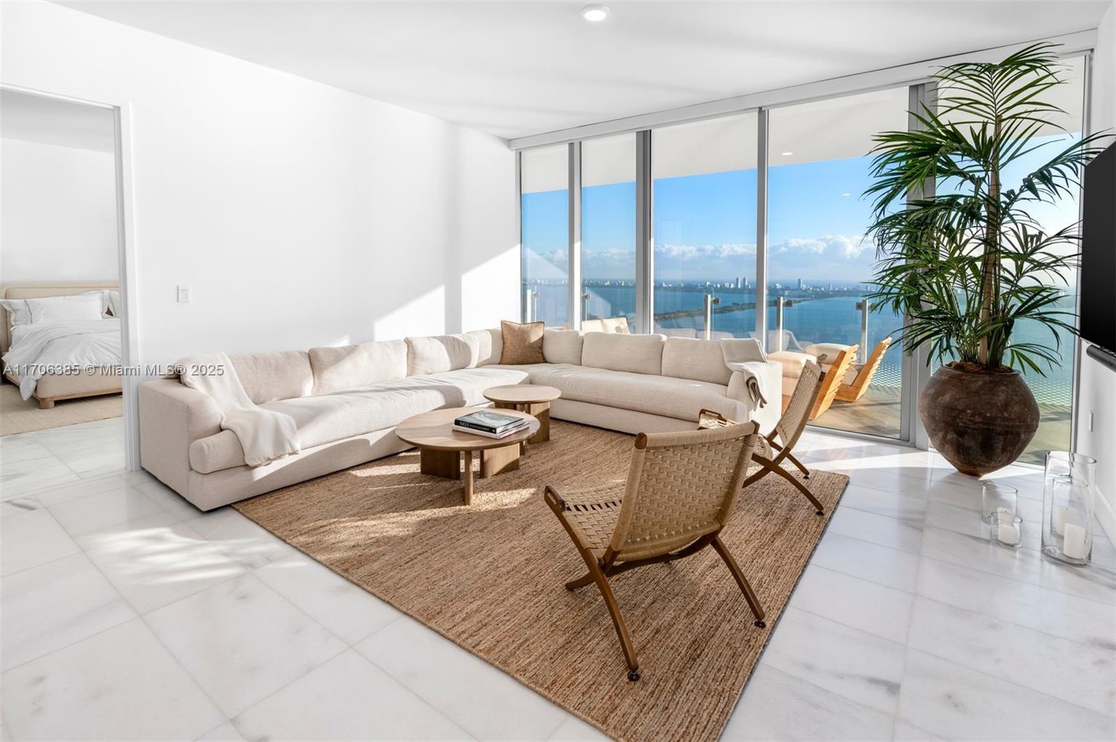 This exquisite 2-bed + Den, 3.5-bath residence offers nearly 2,500 sq. ft., with the den having a closet and full bath, easily convertible to a 3rd bedroom (see rendering—design by VD8 Studio). Enjoy stunning east-facing Biscayne Bay views from floor-to-ceiling windows and a spacious 500 sq. ft. balcony. Features include custom Italian cabinetry, premium appliances, motorized blinds, spa-like primary bath, and custom closet. Includes 2 garage spaces. World-class amenities: infinity pool, fitness center, spa, tennis, playroom, and theater.