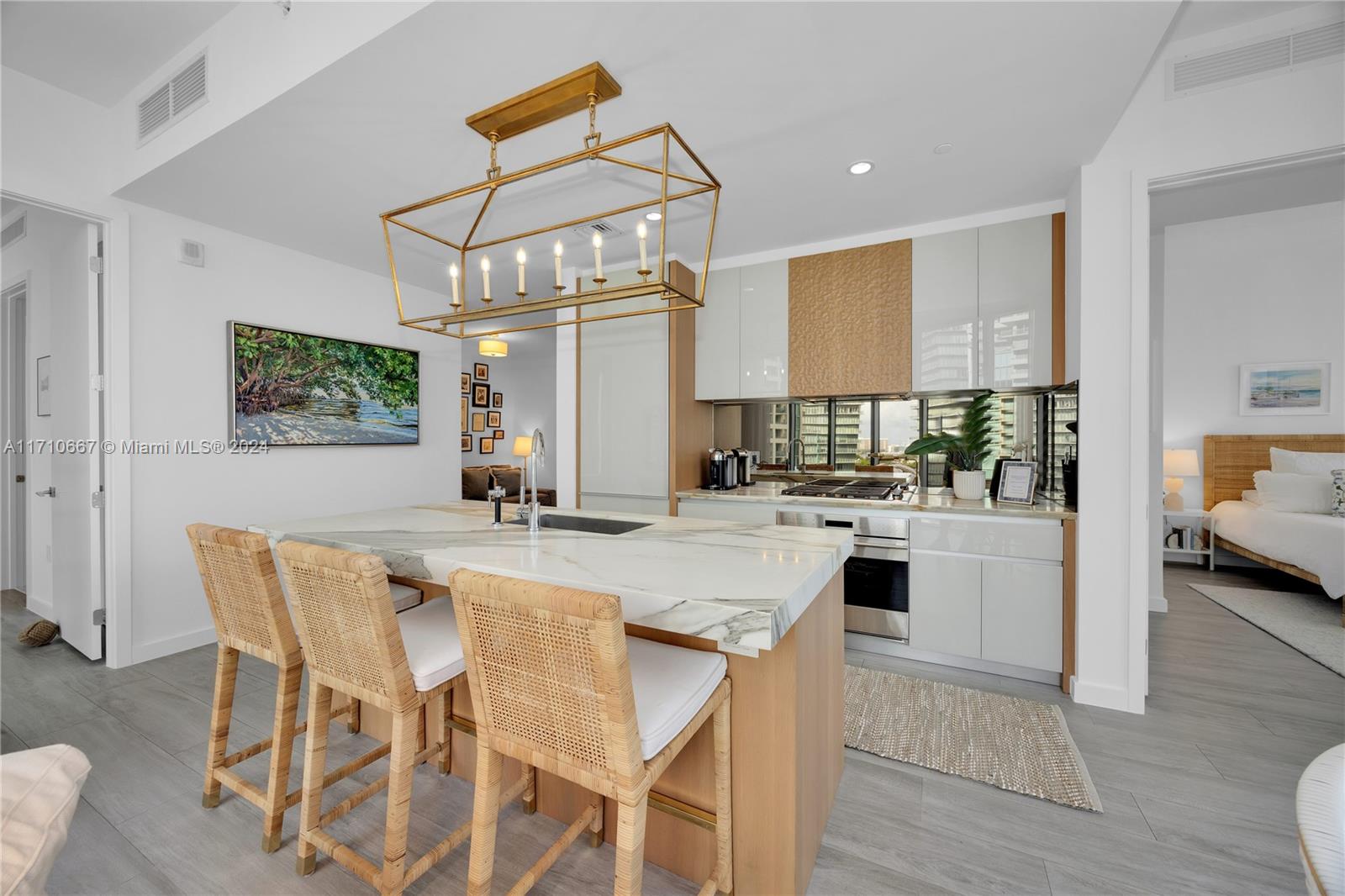 Come home to luxury at Park Grove's Club Residence tower. This 2 bed, 2 bath + den unit features a master bedroom with lavish shower & double sink vanity & walk-in closet. The Chef's kitchen is a culinary dream, equipped with Italkraft cabinetry, marble countertops, and top-notch Wolf, Sub Zero & ASKO appliances. Enhanced with black out shades and curtains, tv's & sonos in both the living and master suite. Functional den can be a perfect home office. Enjoy the serenity of the Grove from the terrace with garden views. Nestled in the heart of Coconut Grove, Park Grove is designed by the renowned Pritzker prize-winning architect Rem Koolhaas/OMA and presents a resort-inspired lifestyle with an array of amenities from lap pool, private cabanas, fitness center & spa.