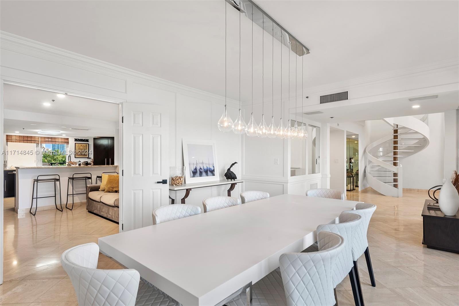 Visit this stunning two story Bayside Village Townhouse on Fisher Island overlooking Biscayne Bay and the Miami Downtown Skyline! Step into this spacious 20 ft+ ceiling condo with a skylight on a 4th floor, modern staircase, elevator, marble floors and terraces on the 1st and 2nd floor perfect for entertaining, a gourmet kitchen, impact glass doors and many more features. Don't miss this exceptional offering!