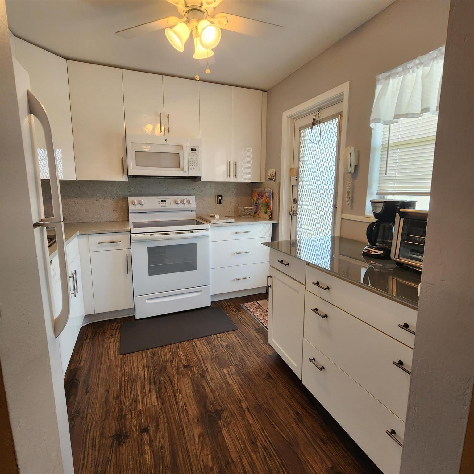 Delight in the harmony of simplicity and elegance with this corner unit situated in the vibrant and active 55+ community in Boynton Beach, Florida. Sitting just a mere 1.5 miles from the enchanting coastline, this locale offers a rare opportunity to enjoy both tranquility and entertainment.The pride of this property is the smartly renovated kitchen that speaks volumes of efficiency and style. The pristine quartz countertops, paired with a full backsplash, inject a sophisticated note of modern luxury, while the ceiling-reach cabinets provide ample storage without compromising aesthetics. The property presents an ambience of warmth, welcomeness, and serenity that is visually and functionally captivating.