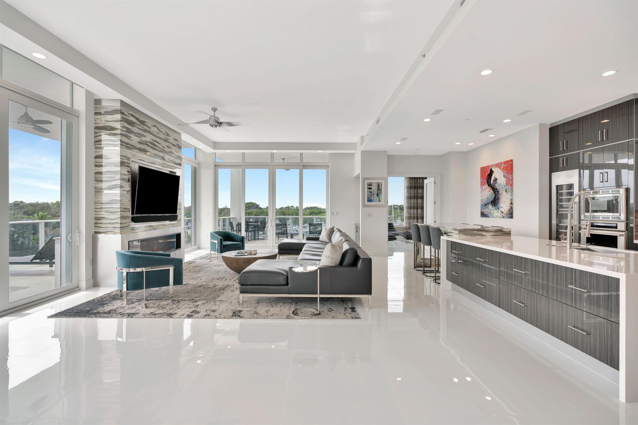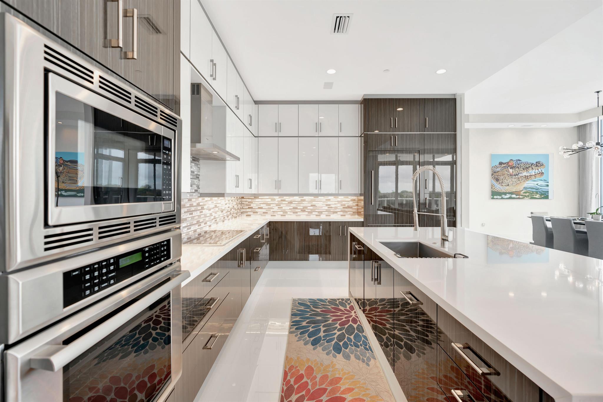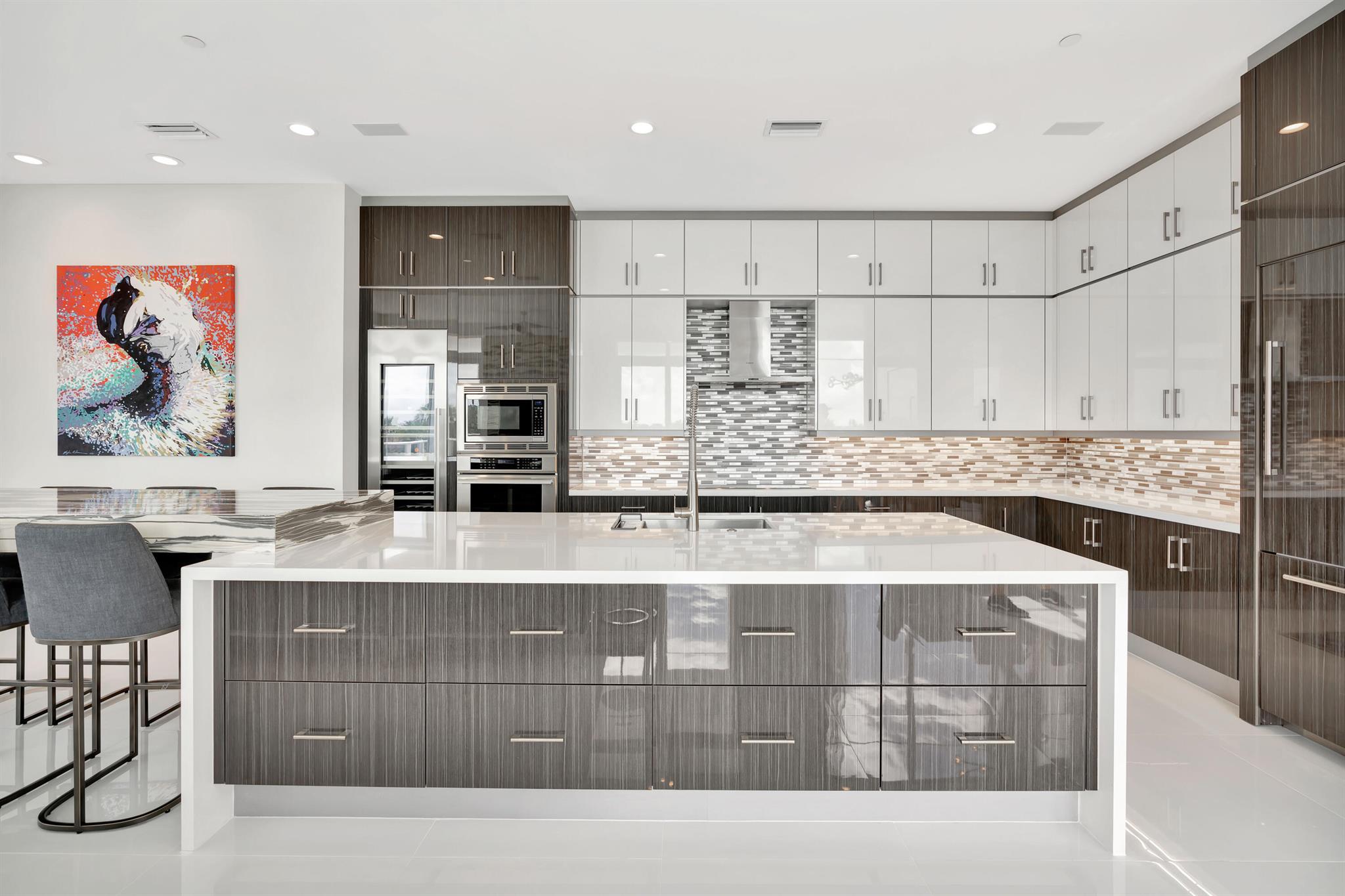 This is the most sought after location in all of Azure. This Penthouse features spectacular sunrise views of the Intracoastal Waterway and sunset views of the Azure Marina. As you exit your privately keyed elevator into this custom residence you will find 36'' polished white porcelain flooring, impact windows and doors and ceiling heights up to 13 feet. This open great room plan includes Grohe plumbing fixtures, custom kitchen and bathroom cabinetry, quartz kitchen and bathroom counters and Thermador appliances including an oversized wine tower. This is the premier residence at Azure. Azure is the premier luxury waterfront condominium of the Northern Palm Beaches. Click more...