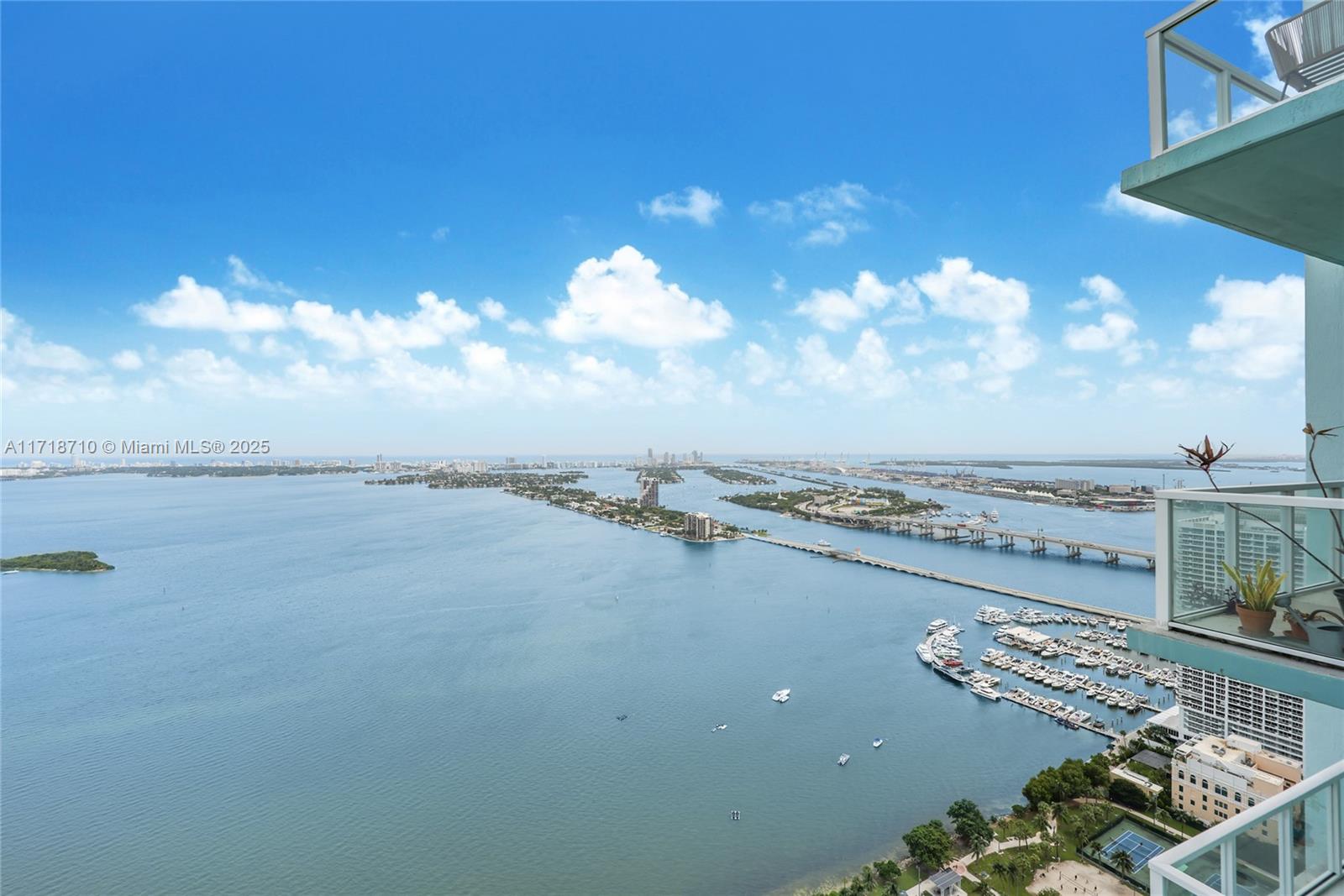 Best Priced! This is a rare opportunity to own a highly coveted, high-floor unit in the desirable 02 line of the South Tower. This 2-bedroom freshly painted and updated residence features en suite baths, a powder room and brand-new SS appliances as well as new granite kitchen counters and an updated powder room. This incredible condo offers sweeping, unobstructed views of the ocean and bay, along with total privacy and two expansive balconies. Situated directly across from Margaret Pace Park, the location is perfect, with easy access to shopping, dining, and entertainment. The building provides exceptional amenities, including a two-story entertainment room with water views, east and west pools, a fitness center, front desk service, and valet parking.