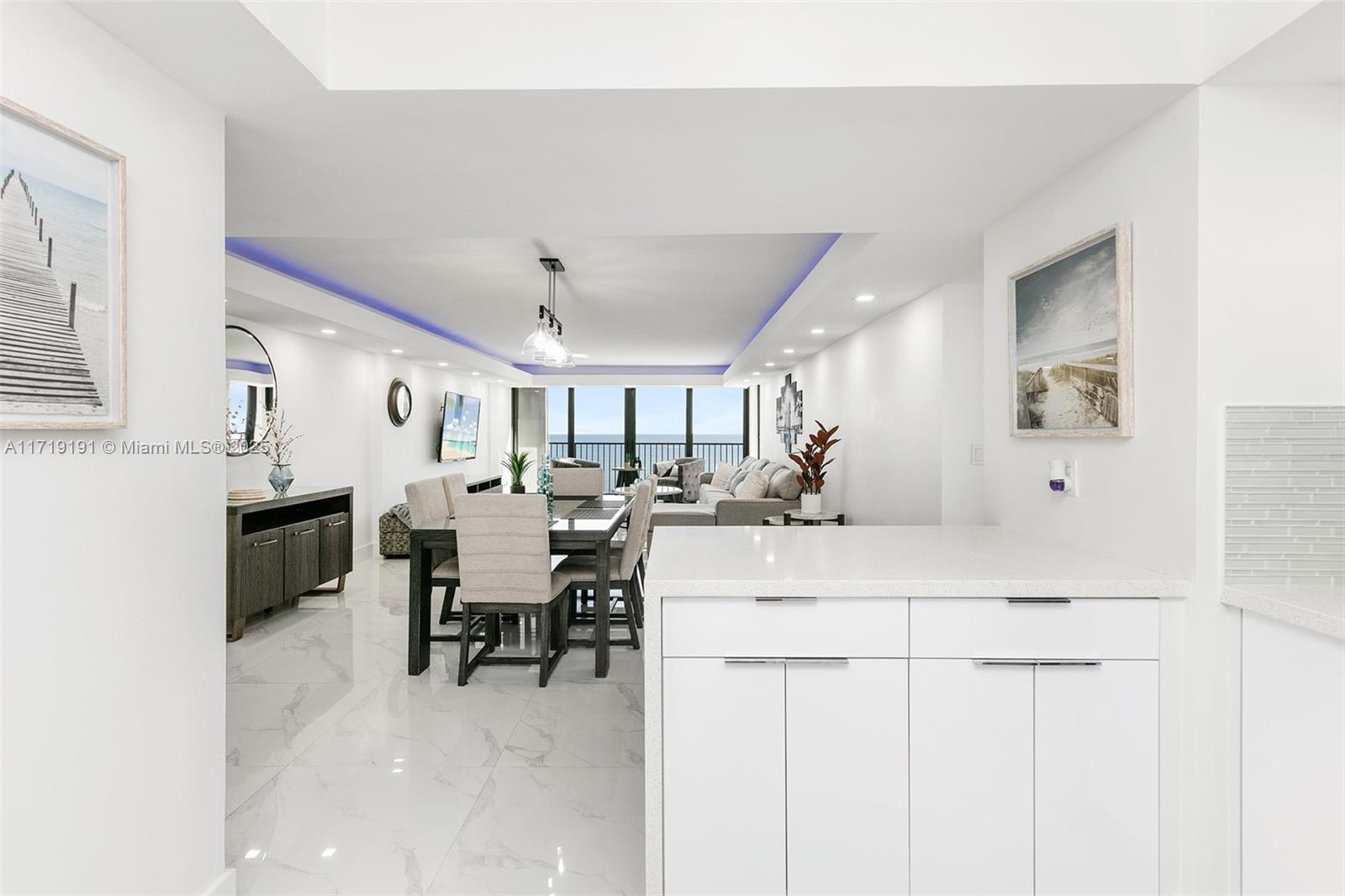 One of a kind, stunning and bright, spacious oceanfront condo! Fully renovated 2-bedroom, 2-bath with direct ocean views. Open kitchen, quality finishes, upgraded bathrooms, oversized tile, and stylish light fixtures. Impact windows, electric shades, and a large balcony— perfect for ocean breezes. Sold turnkey with furniture and electronics—move in, relax! Located in The Quadomain, a premier resort community. Enjoy beach service, 24/7 security, two pools, two fitness centers, a restaurant, fitness classes, beauty salon, business center, and more. This oceanfront gem is ready to become your home!