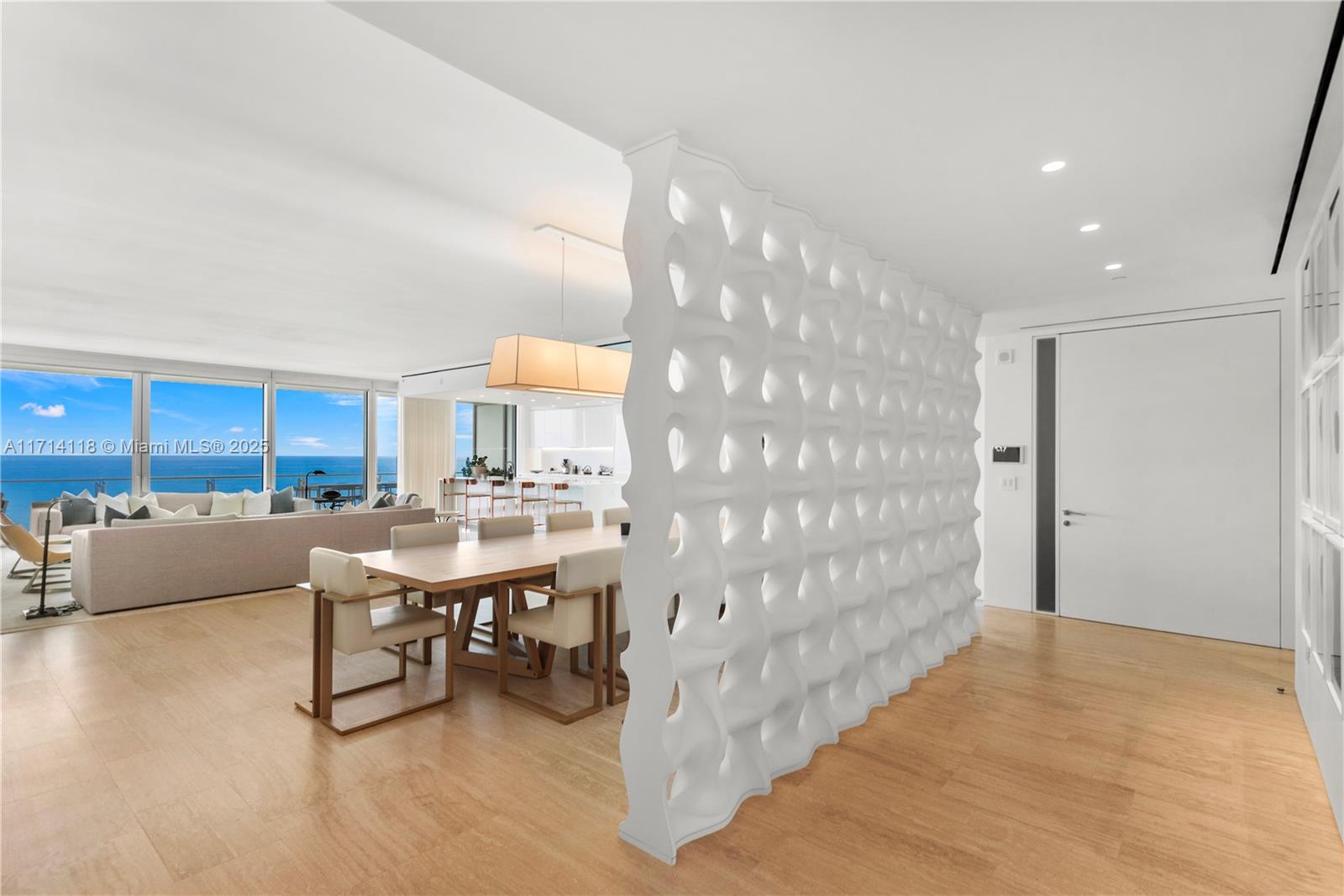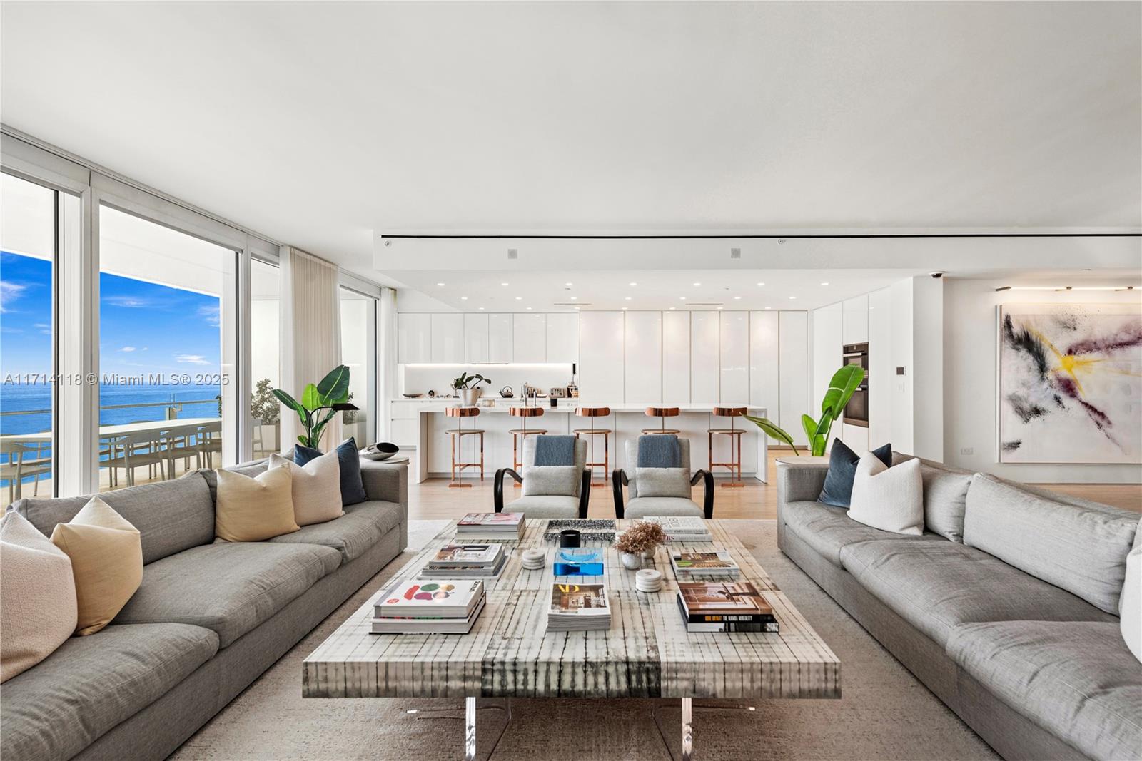 Timeless Elegance of the historic Surf Club and the modern architecture of Pritzker Award-winning architect Richard Meier. This ultra-high-floor NE Corner unit boasts 5,321 interior sq. ft. with over 1,600 sq. ft. on its Ocean Front wraparound balcony (10-11 ft. deep). Enjoy this East-West flow-through unit with 5 Bedrooms, 6.5 Bathrooms, Full Staff Quarters, an Office, and a Crestron Full Smart Home system. The kitchen features Boffi cabinets, Meile appliances, and a Sub-Zero refrigerator. Life at The Surf Club extends beyond the stunning unit. Relish award-winning dining at The Surf Club Restaurant by Thomas Keller, Lido Restaurant, 4 pools, the famed Champagne Bar, a 5-star spa, in-room dining, housekeeping, 24-hour concierge, and 2 dedicated parking spots.