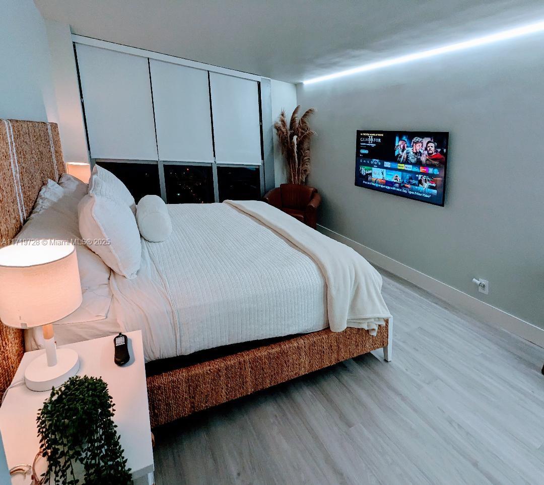 Unique floor plan fully renovated to perfection! Luxury 2/2+den, balcony, open concept living, dining, white quartz kitchen counters, top of the line s/s appliances, decorative fireplace & Ruvati sink. Big master bedroom, walking closets, electric blinds & 2 full baths w/smart toilets. 3rd room w/closet ideal as a small guest bedroom/office. Enjoy amazing views & sunsets of SOBE/Downtown skyline & the bay from this modern, oceanfront building w/floor to ceiling high impact windows, walking distance to Lincoln Rd mall, Faena/Hotel 1 fine dining & vibrant SOBE entertainment. Building includes 24/7 concierge, pool, gym, sauna, social rooms, laundry p/floor, private access to ocean & boardwalk. Quarterly maintenance includes WIFI, cable, hot/cold water, extermination ss & 1 prkng. MUST SEE!!!