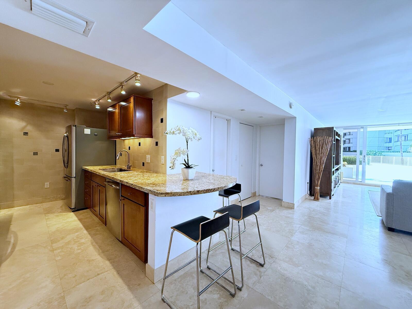 Welcome to The Barclay, where luxury beachside living meets modern elegance. This beautifully designed full 2-bedroom, 2-bathroom condo is a true coastal gem. The open, airy layout is complemented by sleek, modern finishes and travertine floors throughout, creating a seamless blend of style and comfort.Floor-to-ceiling impact glass windows open to your expanded patio, literally just steps away from the pool and tranquil beach. Beautifully renovated kitchen boasts elegant granite countertops and stainless steel appliances, while the bathrooms showcase contemporary upgrades that perfectly merge style with functionality. With the added convenience of an in-unit washer and dryer, this residence provides the ultimate in effortless living. This lanai beach condo offers the ideal combination