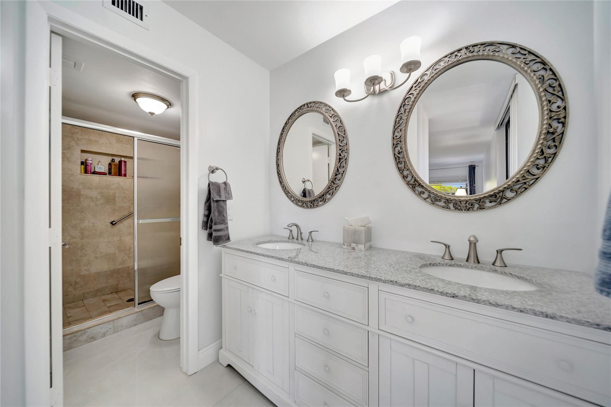 GORGEOUS PRISTINE 1530 SQUARE FEET FULLY RENOVATED condo in Prestigious 55+ LAKES OF ENVIRON Community. Unit has Impact Windows & Doors (2021); In-Unit Washer/Dryer; Tankless water heater; & newer AC (2019). LAKES OF ENVIRON is a very well-maintained development WITH BRAND NEW ROOFS; new paint; new keyless entry security system; new HEATED POOL renovation; new pool furniture and recently sealed parking lot with many guest parking spaces. No pending special assessments. Ownership in LAKES OF ENVIRON automatically entitles membership to Environ Cultural Center featuring Fitness Center, Billiard Room, Bowling Alley; Tennis Courts, Pickleball Court, Basketball Court & much more. This BEAUTIFUL unit is a MUST SEE !!! Dining Room Chandelier and guest bedroom drapes are not included in sale.