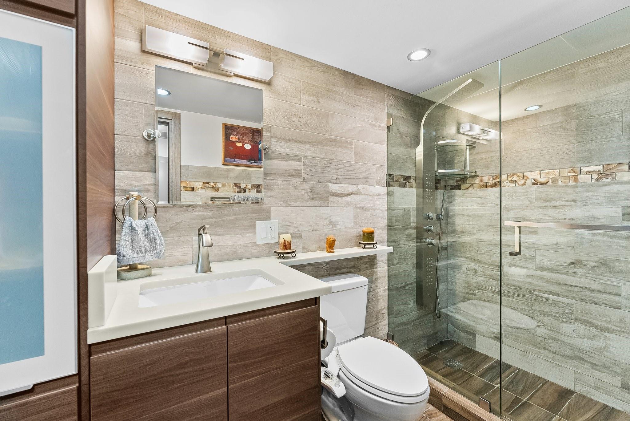 The ultimate, fully renovated beach condo! Welcome to Emerald Tower, where you can enjoy living in a building which has completed all milestone inspections, has been fully renovated throughout and has deeded access to the private El Mar Beach Club. With a Southwest exposure, you can enjoy incredible views from your wraparound balcony sunrise to sunset of the ocean and intracoastal. This 3 bedroom, 2 bathroom unit was fully renovated and expanded in 2017. Inside you will find porcelain tile floors, a modern kitchen with plenty of storage, a spacious living and dining area, washer and dryer in unit. Generous primary suite with steam sauna shower capabilities and an expanded area perfect for an office or craft area. Boat docks up to 36' (when available), 1 garage spot and plenty of amenities!