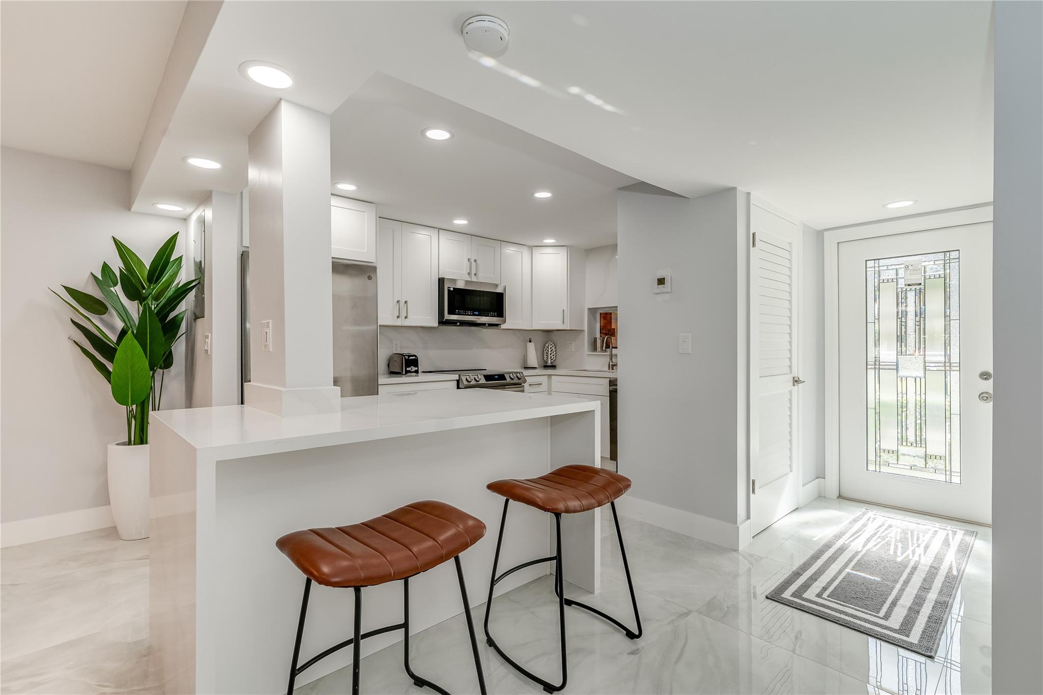 ABSOLUTELY THE MOST BEAUTIFUL, NEWLY & TOTALLY RENOVATED 2BR/2BA apartment in Hollybrook. ALL NEW AMENITIES INCLUDE: Wide Open Kitchen featuring SS Appliances, Quartz Countertops, Raised Ceiling, Bright LED Lighting & more. Washer/Dryer inside. Large ceramic tile throughout. Impact Windows. Recreation Lease PAID IN FULL. Convenient 1st floor steps from pool/BBQ. Amenities include Restaurant, Billiard Room, Bbq/Picnic Area, Clubhouse, Courtesy Bus, Exercise Room, Heated Pool, Library, Putting Green, Sauna, Shuffleboard, Tennis, Pickle Ball, Vehicle Wash Area, Electric Car Charging Station. Close to shopping, dining & highways. 15 min. to the beach. ABSOLUTELY THE VERY BEST!