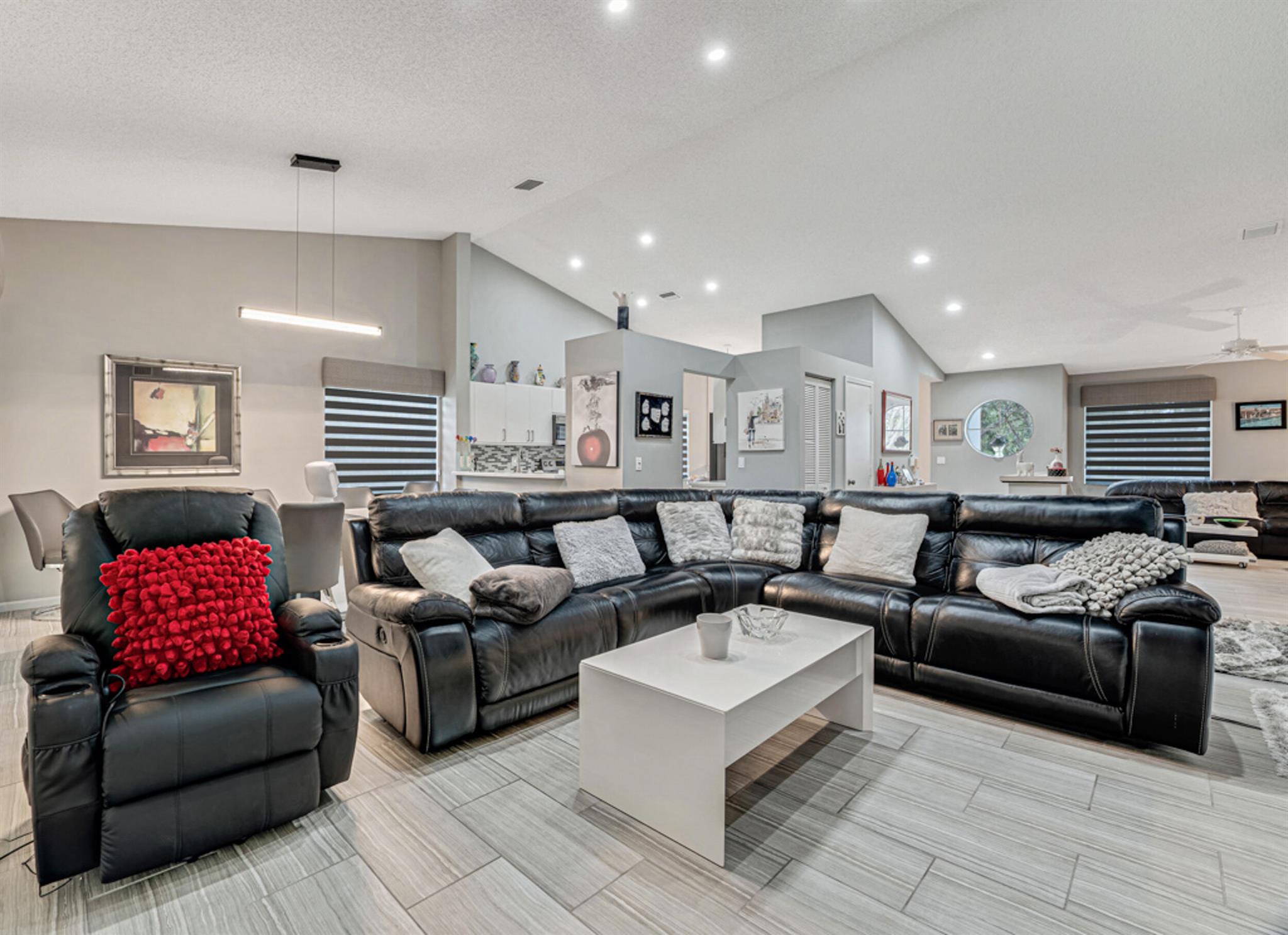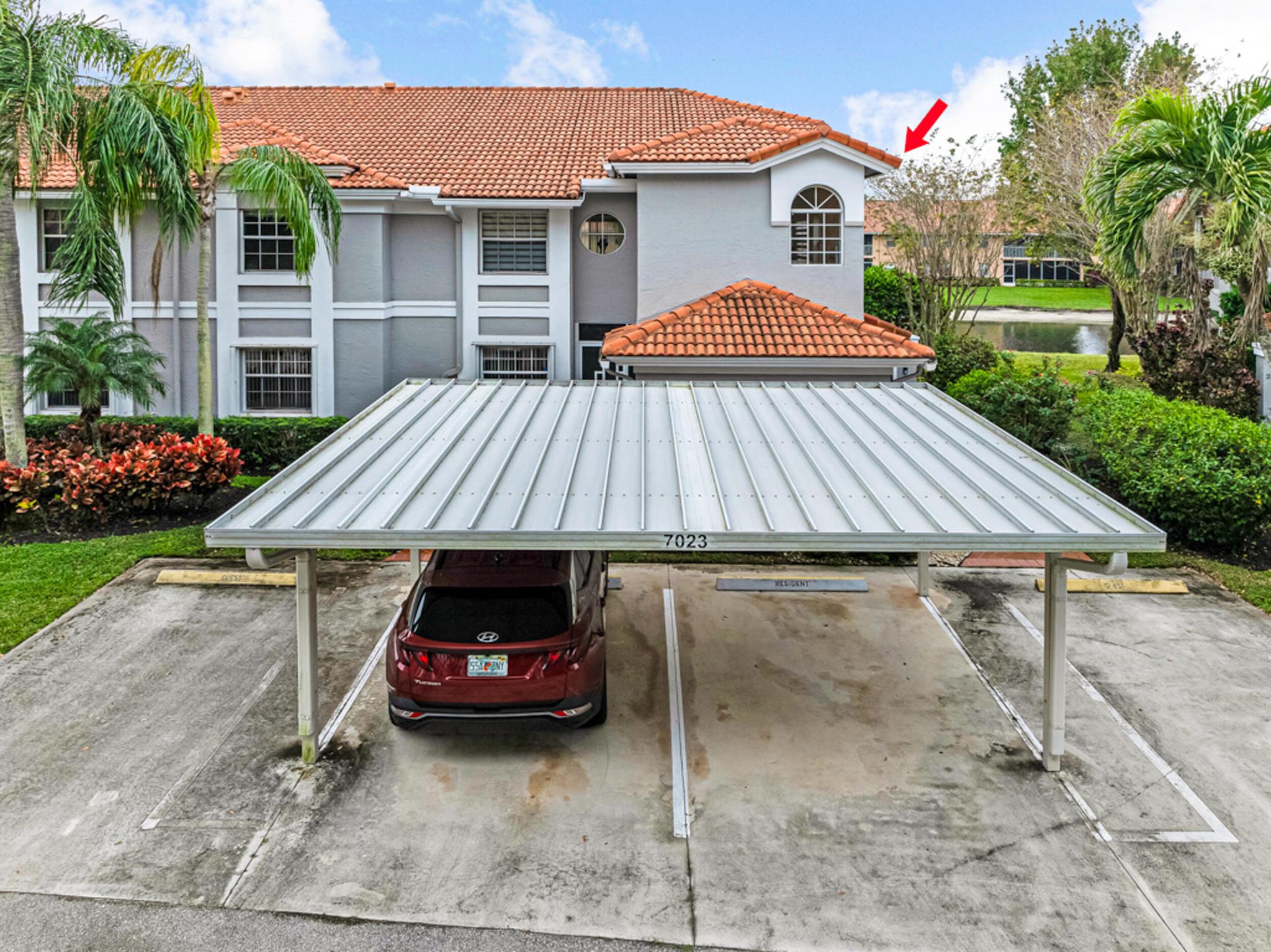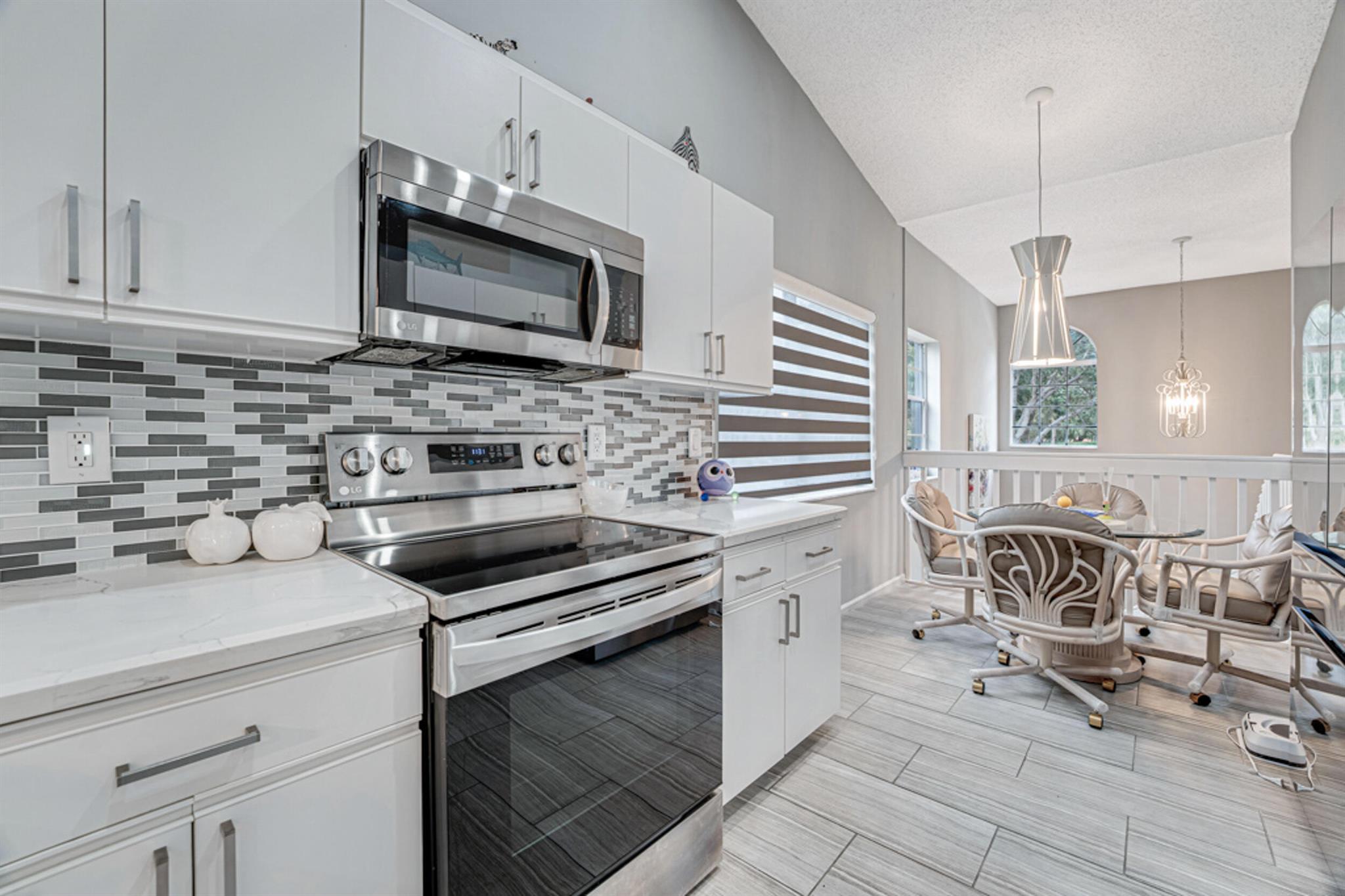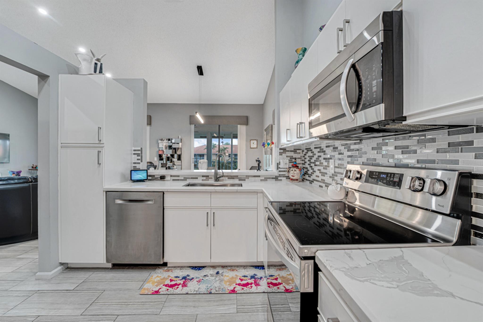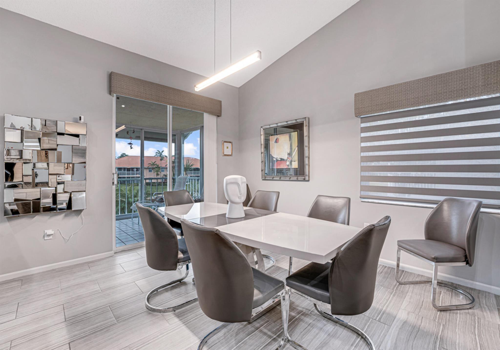 This modern & super clean condo offers comfortable living & a lovely lake view. The home is filled with natural light, creating a warm & inviting atmosphere. The updated kitchen features sleek stainless steel appliances, and ceramic tile & high hat LED lights throughout the living areas. An enclosed patio provides a space to relax and enjoy nature. Additional conveniences include an inside laundry room and covered carport parking. Located in the active 55+ community of Palm Isles, this home is minutes away from new shopping centers, offering dining, retail, & entertainment options for your convenience and enjoyment. Be sure to check out the 3D walkthrough tour for an ''in-person'' view of the entire condo. Multi-million Dollar Renovated Clubhouse reopens in December